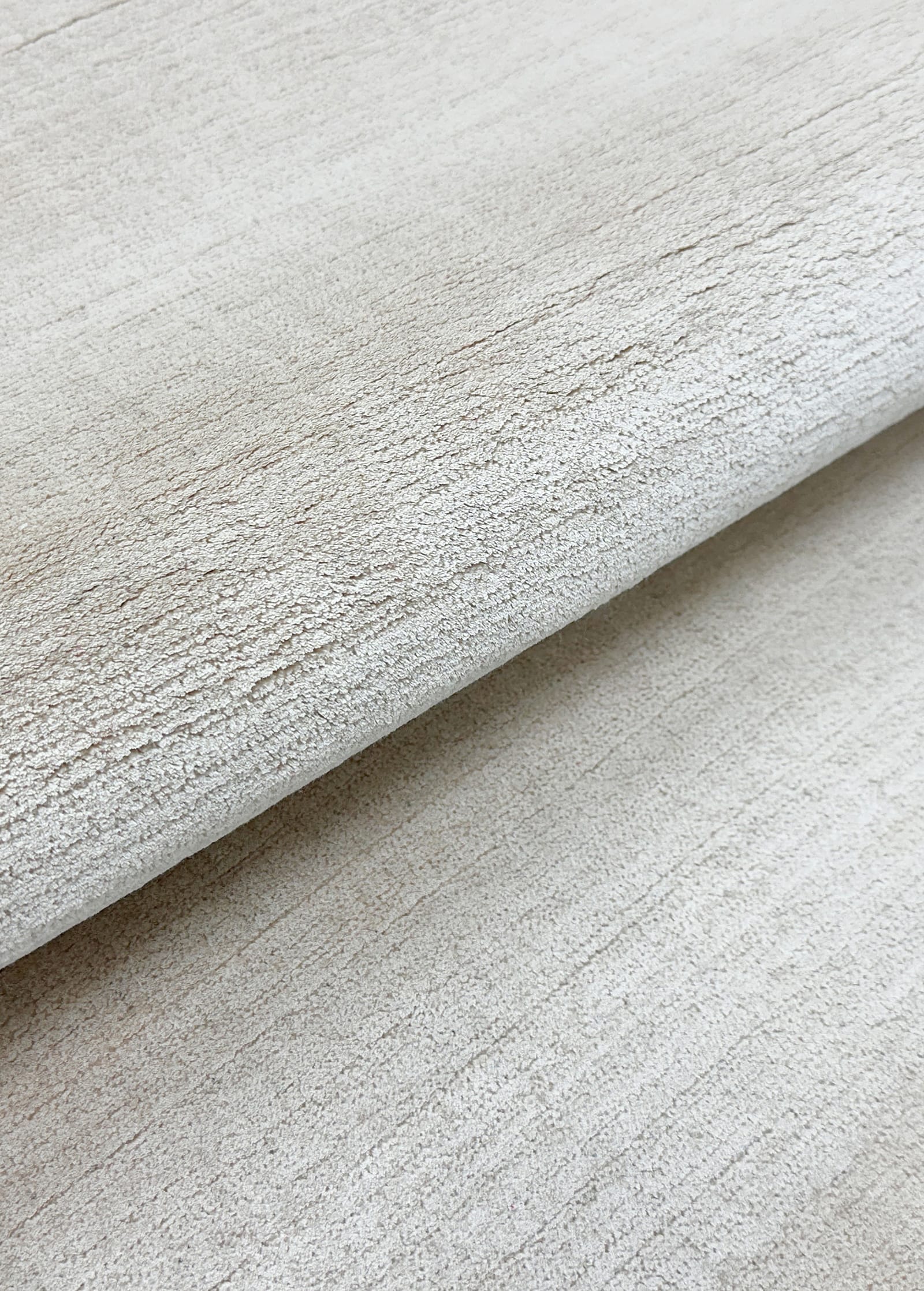 Natural Silk Luxe Solid 6mm Natural White is hand made of the finest natural silk. This high density construction using finely spun silk creates an impossibly soft feel underfoot. The Natural White colorway is crafted using the un-dyed silk yarns.
