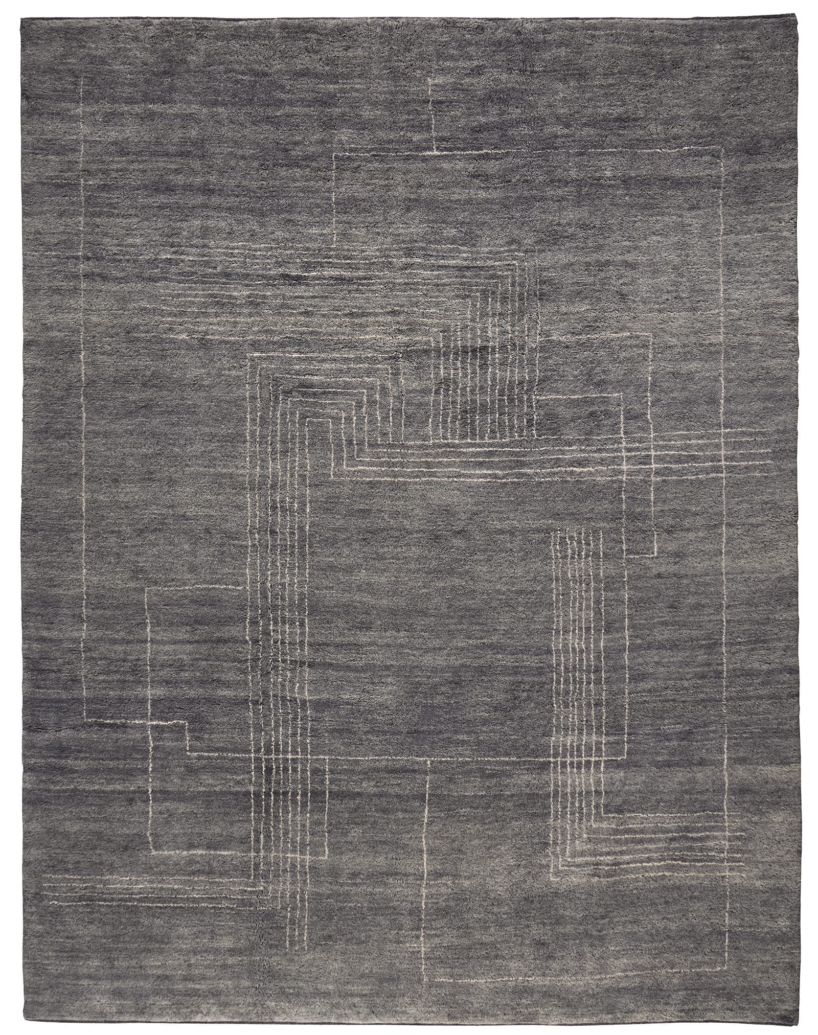 Elevate your space with NEXUS CHARCOAL. The line based design rendered in abrashed grey wool will provide simple, textural interest to any space. Experience this exclusive, sophisticated, 100% wool hand-knotted rug from India. Nexus Charcoal is stocked and available in standard room sizes; custom options available. Please contact our rug experts to learn more.