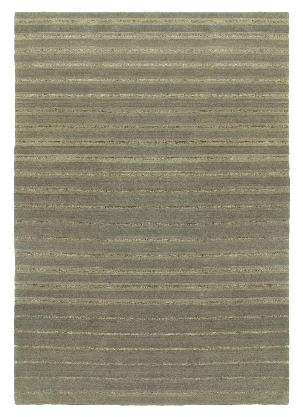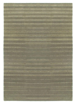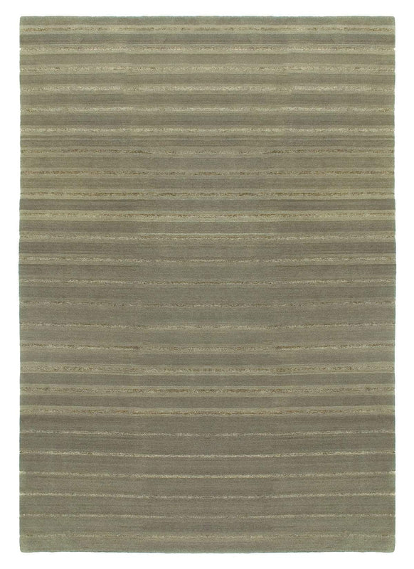 Striking and elegant contrasting colors bring depth to this modern and contemporary carpet. Linear striations of beige silk over a moss green wool field result in a brilliant contrast and elegant fusion.