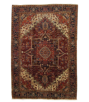 This hand knotted semi-antique Heriz rug measures 7' 8" x 11' 1". It is in excellent condition and available for immediate delivery.