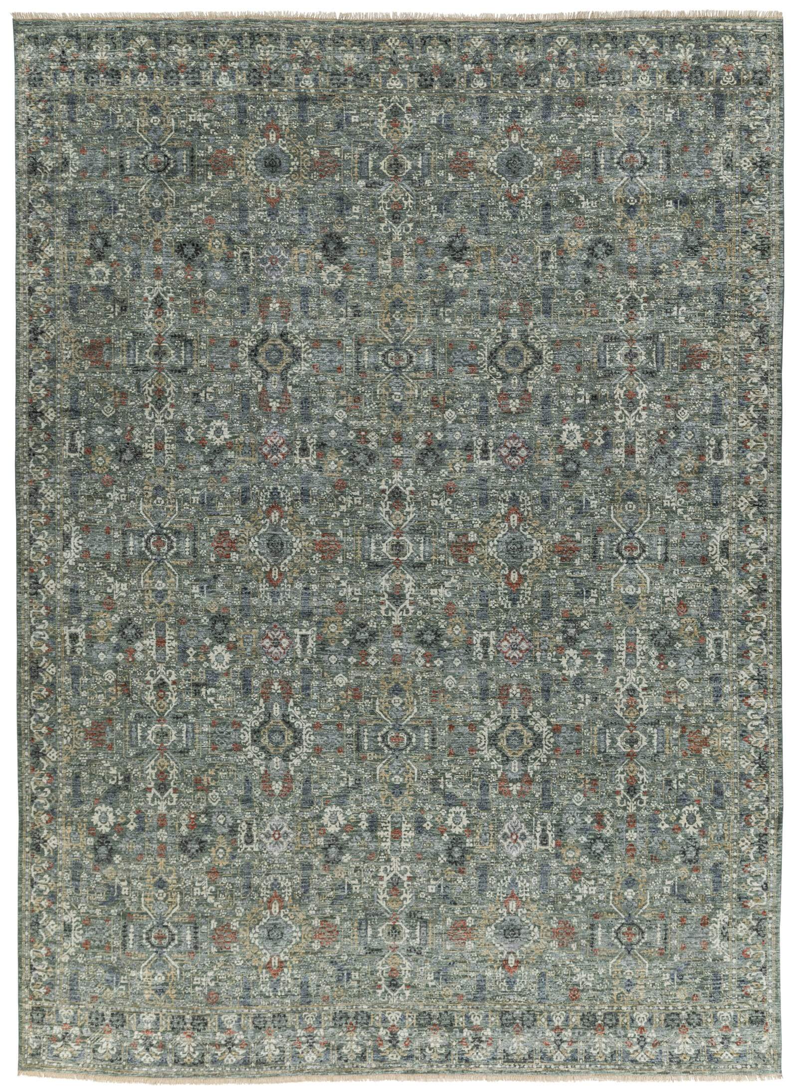 Timeless style of traditional elegance; luxury flooring that embodies modern heritage. An inspired green tinged grey palette features a small scale pattern in sophisticated contrasting tones. Shanti Sea Green is available in our standard room sizes; custom sizes, runners, squares and rounds available. Our rugs are normally available for delivery within 10 to 90 days; Contact Us or Request a Quote for timing on the rug and size of your choice.
