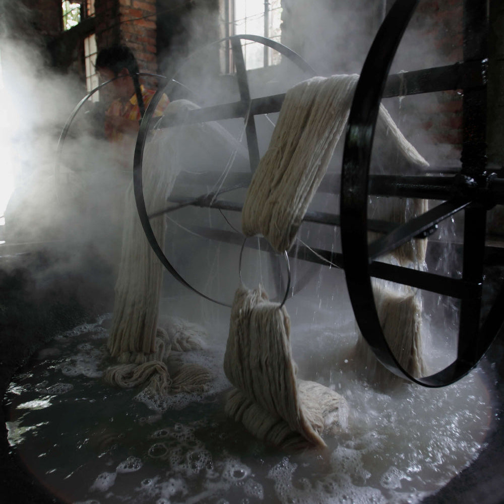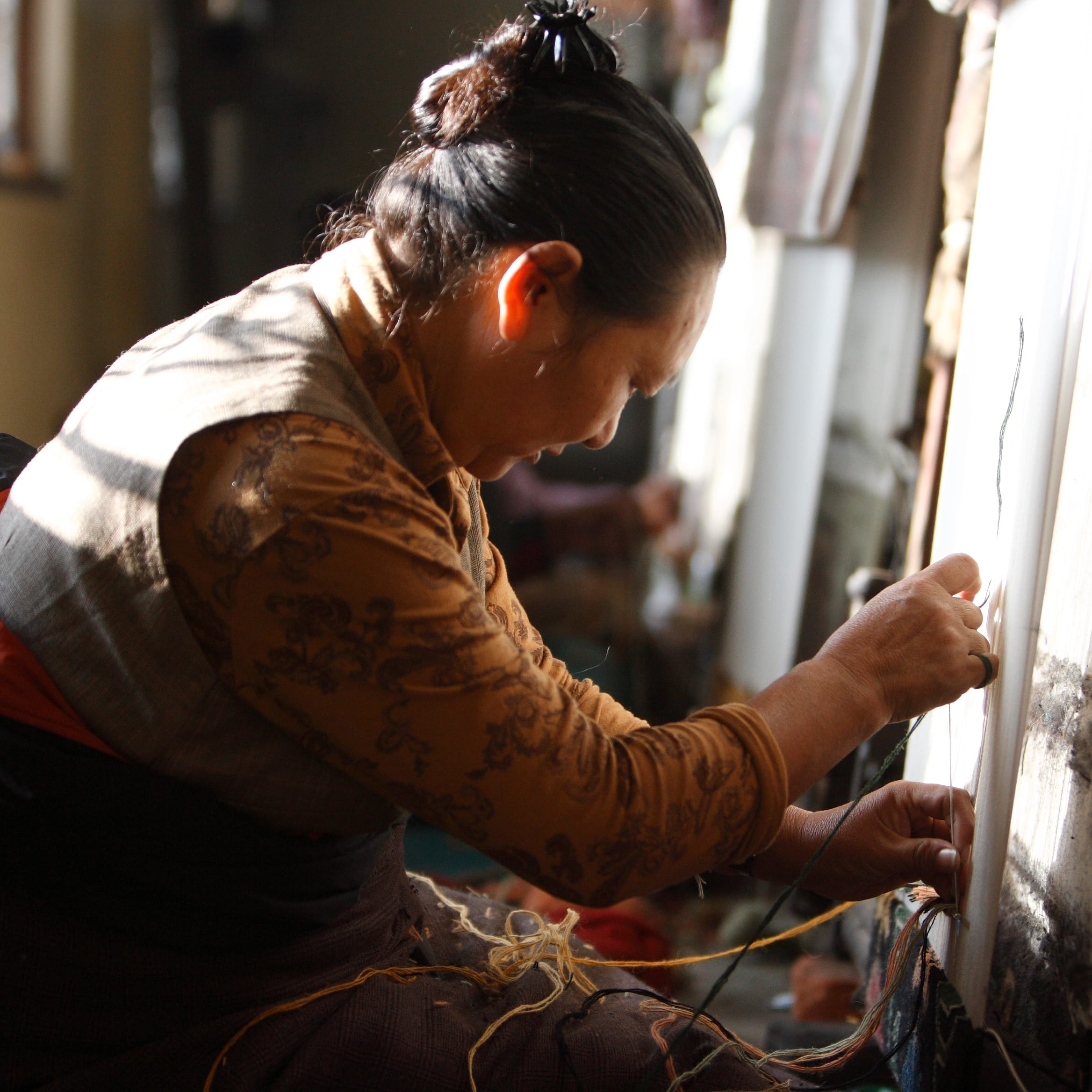 Our yarn requires a high degree of skill and an enormous amount of human labor to hand card, and hand spin. While most carpet production in the world begins with machine-spun yarn - simple, fast, and consistent - we choose to expend almost as much labor in carding and spinning the yarn by hand as is required to weave it into a carpet. After spinning it is dyed in small pots by hand. While the design maps followed by our weavers are produced by computer, washing, shearing, and detailing of the carpets are still performed by hand.