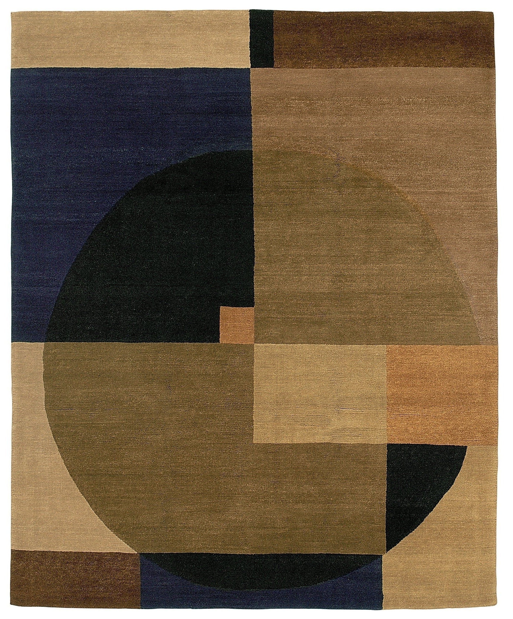 A burnished palate and geometric design create a carpet that plays well against the wood in your home. A more subdued colorway with natural tones of beige and taupe, a burst of black plum color gives contrast and definition to this design.