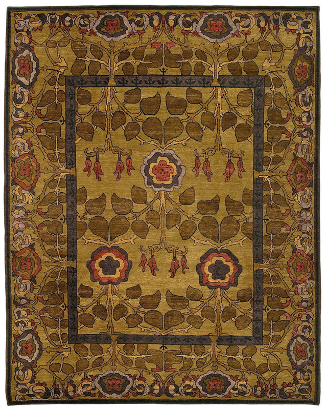 Like a stained glass window for your floors, the Belle inspired Inverness rug comes in several lovely palates. A border print that goes outside the lines. The border is adorned with accents in dark brown, gold, eggplant, purple, grey, rust red, black, and the main background color in border and field is olive green. Inverness Nocturne is available in our standard room sizes; custom sizes, runners, squares and rounds available. Our rugs are normally available for delivery within 10 to 90 days. Contact us or Request a Quote for timing on the rug and size of your choice.
