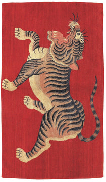 Make every year the Year of the Tiger with this wild graphic tiger on a bright red field, hand knotted in our finest Himalayan wool.