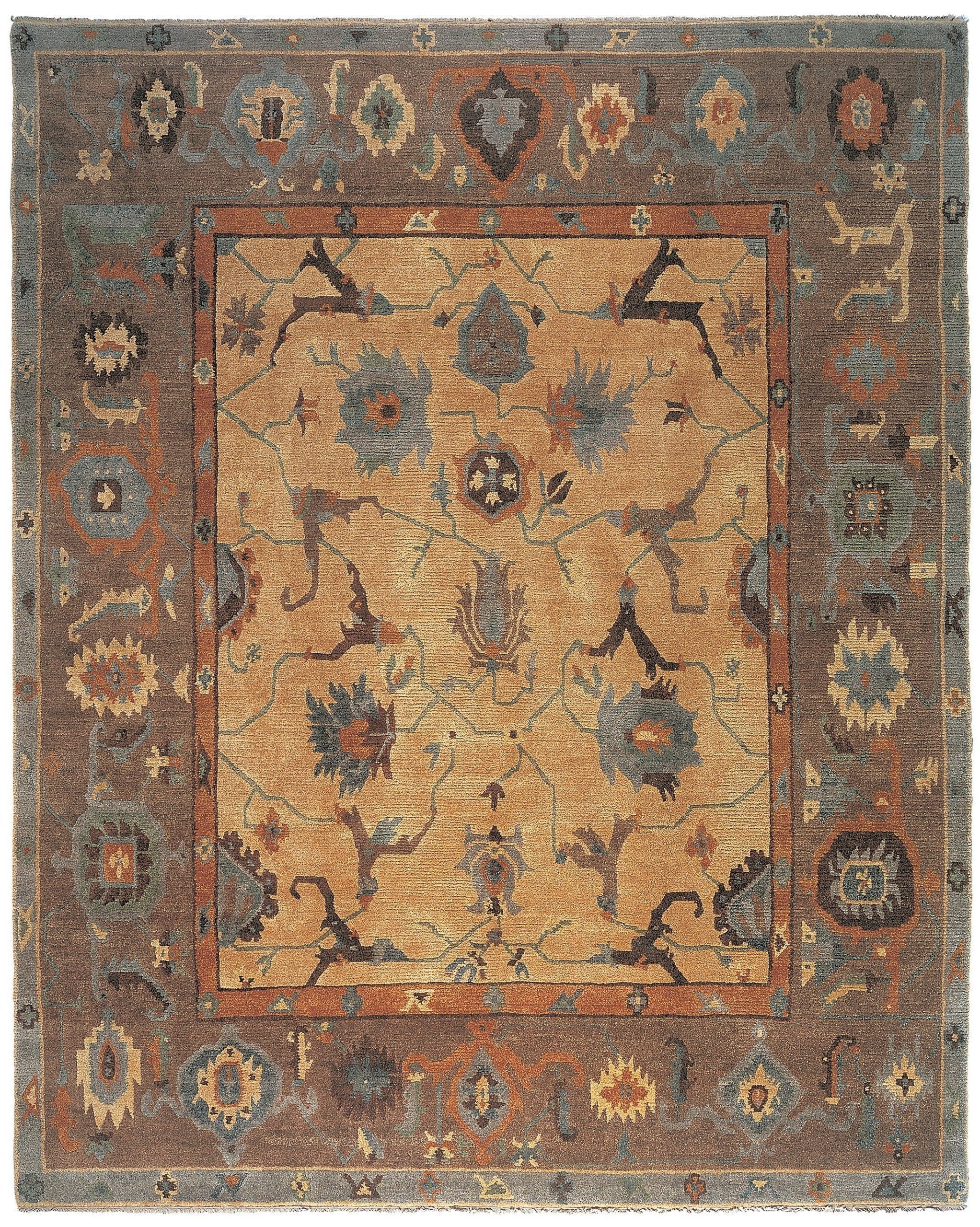 Whimsical motifs are grounded in traditional folk design and a complimentary border field. A cozy Arts and Crafts rug with a touch of the exotic. A neutral palette to ground any design, Zagros Hemp features a yellow beige field and earthy brick orange, brown and blue accents. Zagros Hemp can also be made to order to any size, contact your salesperson for more info on our custom program.