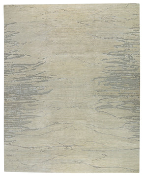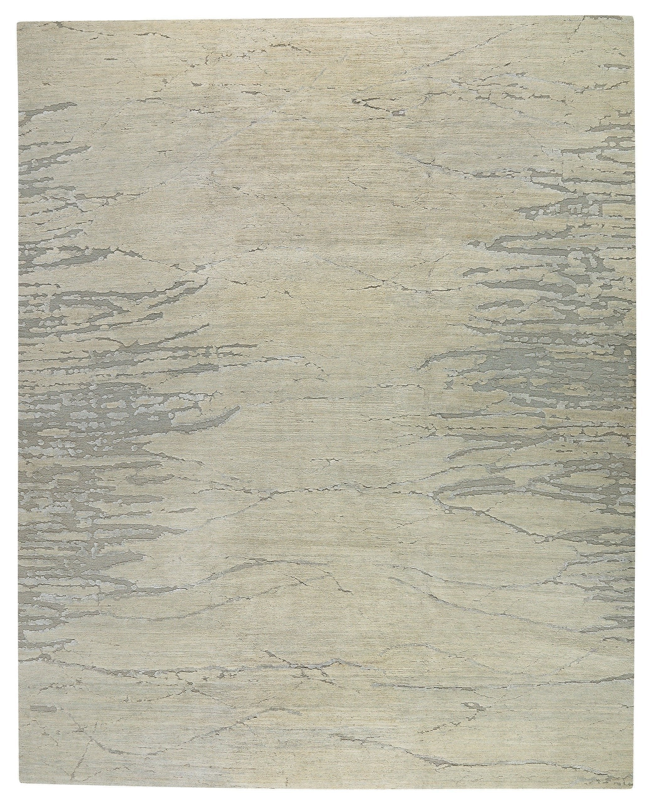 Silk tendrils dancing across a striated field of the finest wool. Rich colorways and superb craftsmanship highlight the modern elegance of this sophisticated, statement rug. A look of cracked stone, natural white and grey tones of the Glacier colorway create a brilliant organic carpet. Remaining pieces of Here & There Glacier are now available as part of our Archive Sale collection.