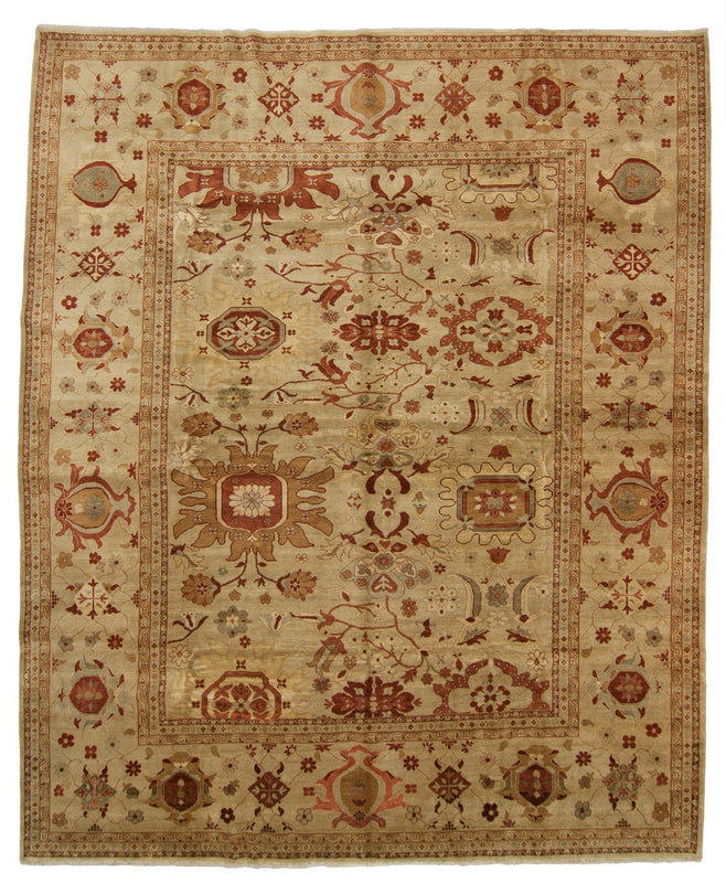 This Abraham rug was hand knotted in Armenia using 100% Armenian wool with the Tufenkian Esfahan construction. The Esfahan weave used in this design is our most luxurious Armenian quality, comparable to our Tibetan Shakti weave. The Abraham rug is dyed with all natural vegetable dyes which deliberately creates color shadings and striation in the delicate and refined designs of this rug. This rug measures 12'11" x 15'6".