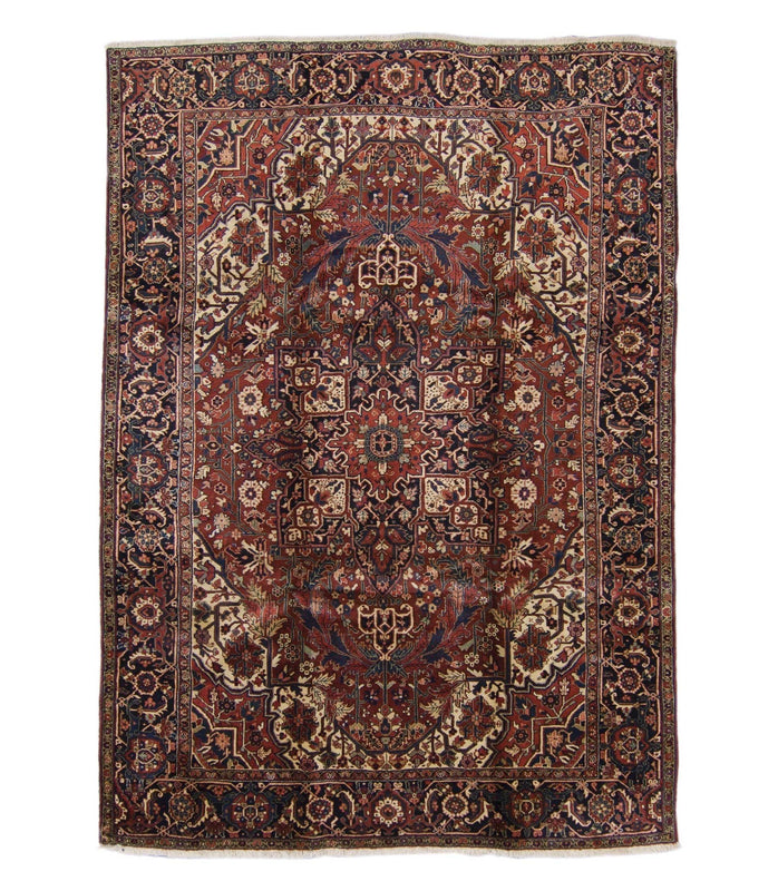 The exact measurements of this Semi-Antique Heriz are 8' 10" X 12' 5". This beautiful hand knotted carpet was crafted prior to 1949 of 100% Persian wool. This rug is available to ship today.