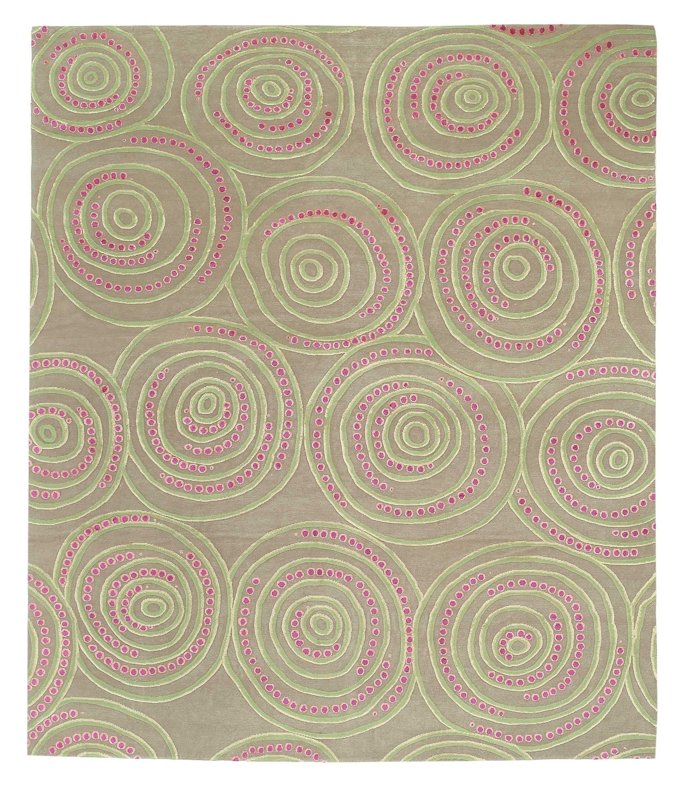 A playful carpet with splashes of vibrant color in our finest wool and silk.