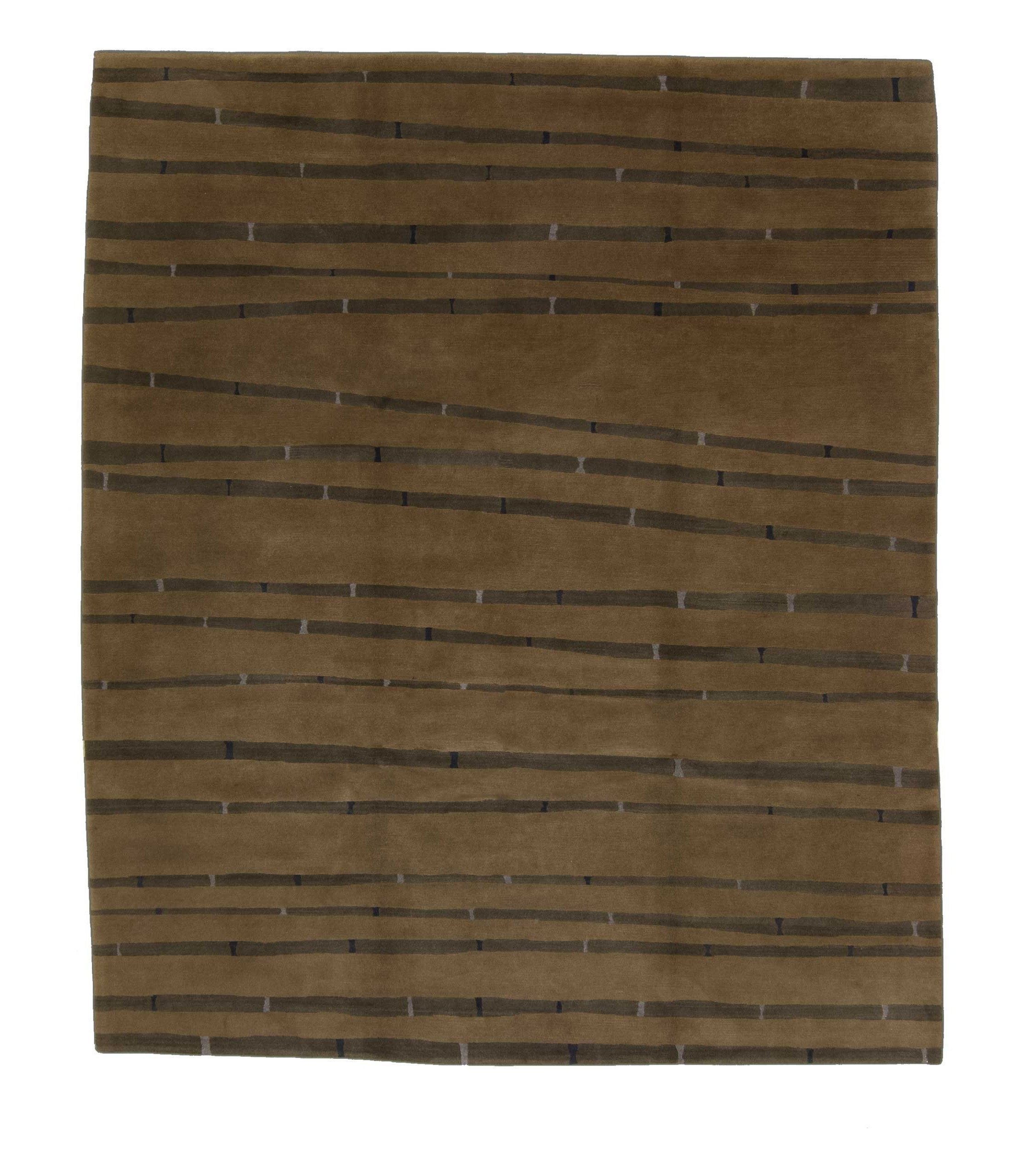 Bamboo is a classic design from Tufenkian's Designers Reserve collection and remains a popular rug because of the vibrant colors and transitional pattern. Bamboo Maple is hand-knotted of 100% Himalayan wool and made in Nepal using our Shakti weave which has a pile height around 0.28 inches. Bamboo Maple is a golden brown with the design in moss green and navy and silver accents. This rug is available in larger room sizes which would work well in a dining room, living room or bedroom.