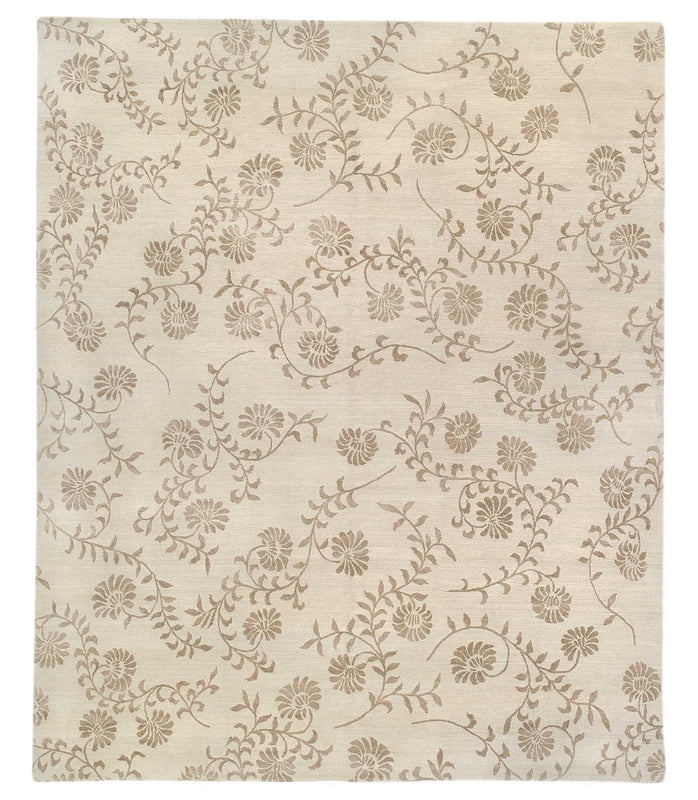 Indulge in the comfort and sophistication of our Chrysanthemum Platinum rug. The elegant piece was handcrafted from wool and is elegantly accented with hints of silk originating from Nepal. The complex yet charming design was creating using the Tufenkian's own Shakti weave technique, giving the piece an approximate pile height of 0.28 inches.