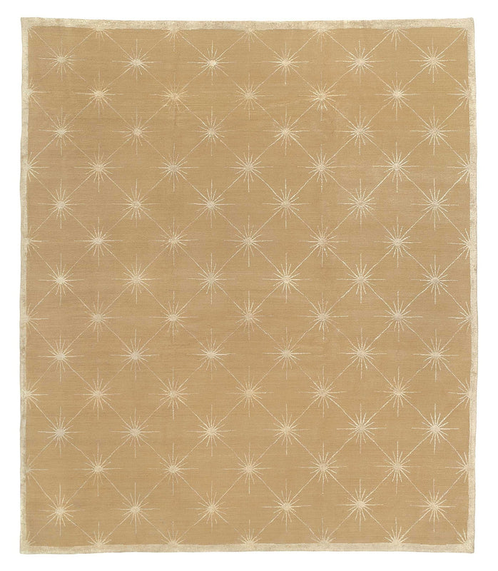 Designed by Barbara Barry, the Starlight rug was hand knotted in Nepal in the finest Himalayan wool and silk using our premium Shakti weave. This design has a warm beige color palate in a subtle yet illuminating pattern with silk accented starbursts, adding silver luster to this contemporary design.