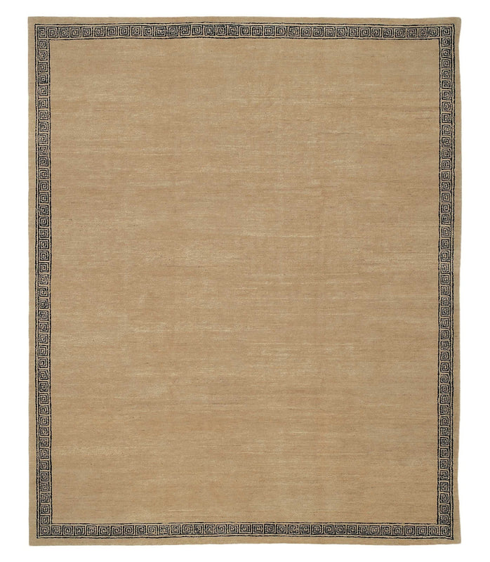 Ionic Border Chino is a neutral solid border rug that will blend in with any design. This simple yet elegant accent rug was made in Nepal of 100% Himalayan wool using our Kotana weave which has an average pile height of 0.41 inches. Ionic Border Chino is beige with a border in dark grey. This rug is only available in size 3x5 and would work well for a walk-in closet, master bathroom, or entry rug in a small foyer.