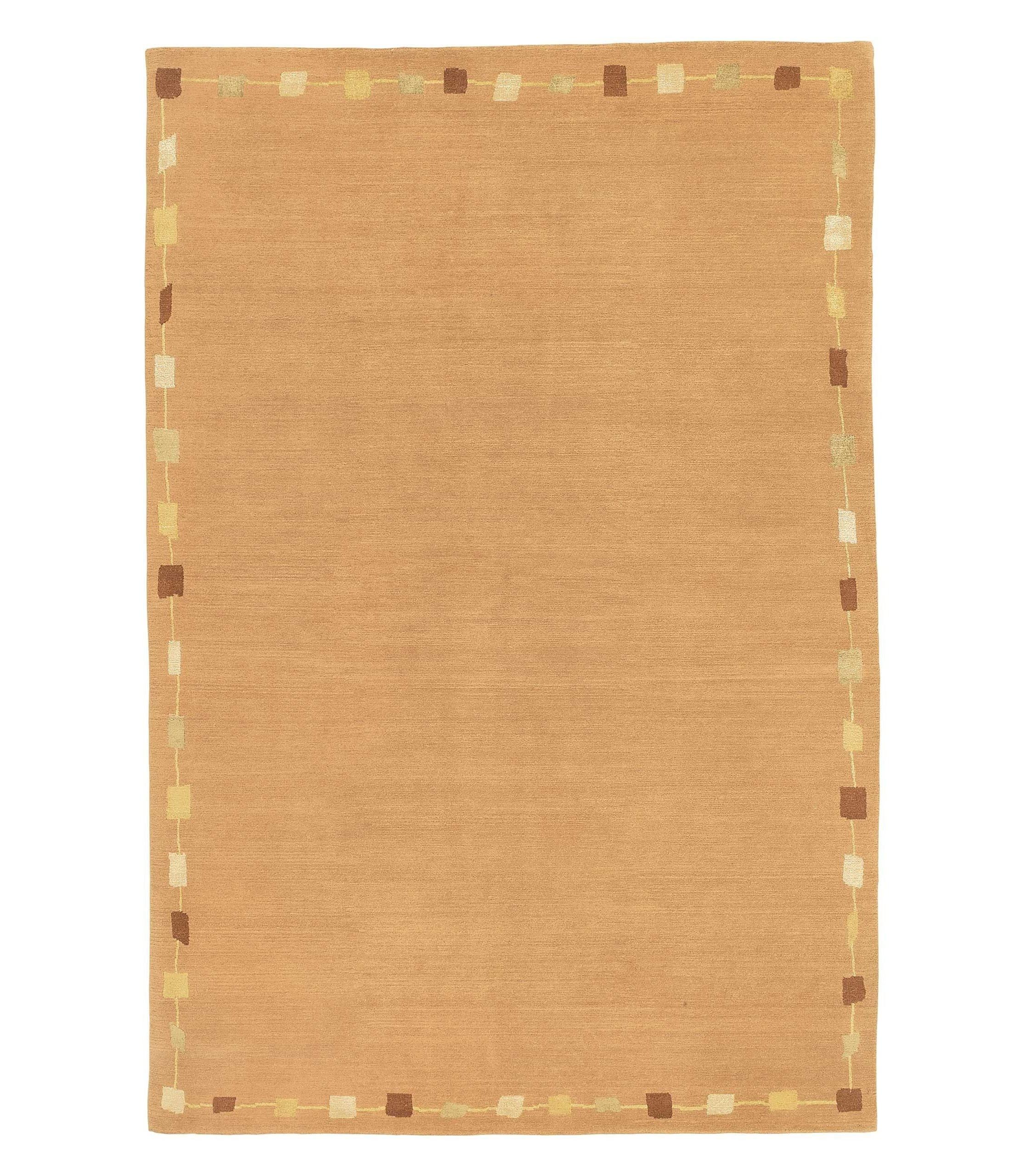 Icecube Border is a border solid rug which is adorned with a simple yet elegant silk border. Icecube Border Canyon was hand knotted in Nepal using our Shakti weave, the average pile height is about 0.28 inches and has a smooth and luxurious finish. The field of this rug is a light terracotta and the border incorporates honey yellow, sienna brown, silver and olive green accents. Icecube Border Canyon is available in a variety of sizes ranging from accent rugs to room size rugs, making it easy to find the perfect size for your room.