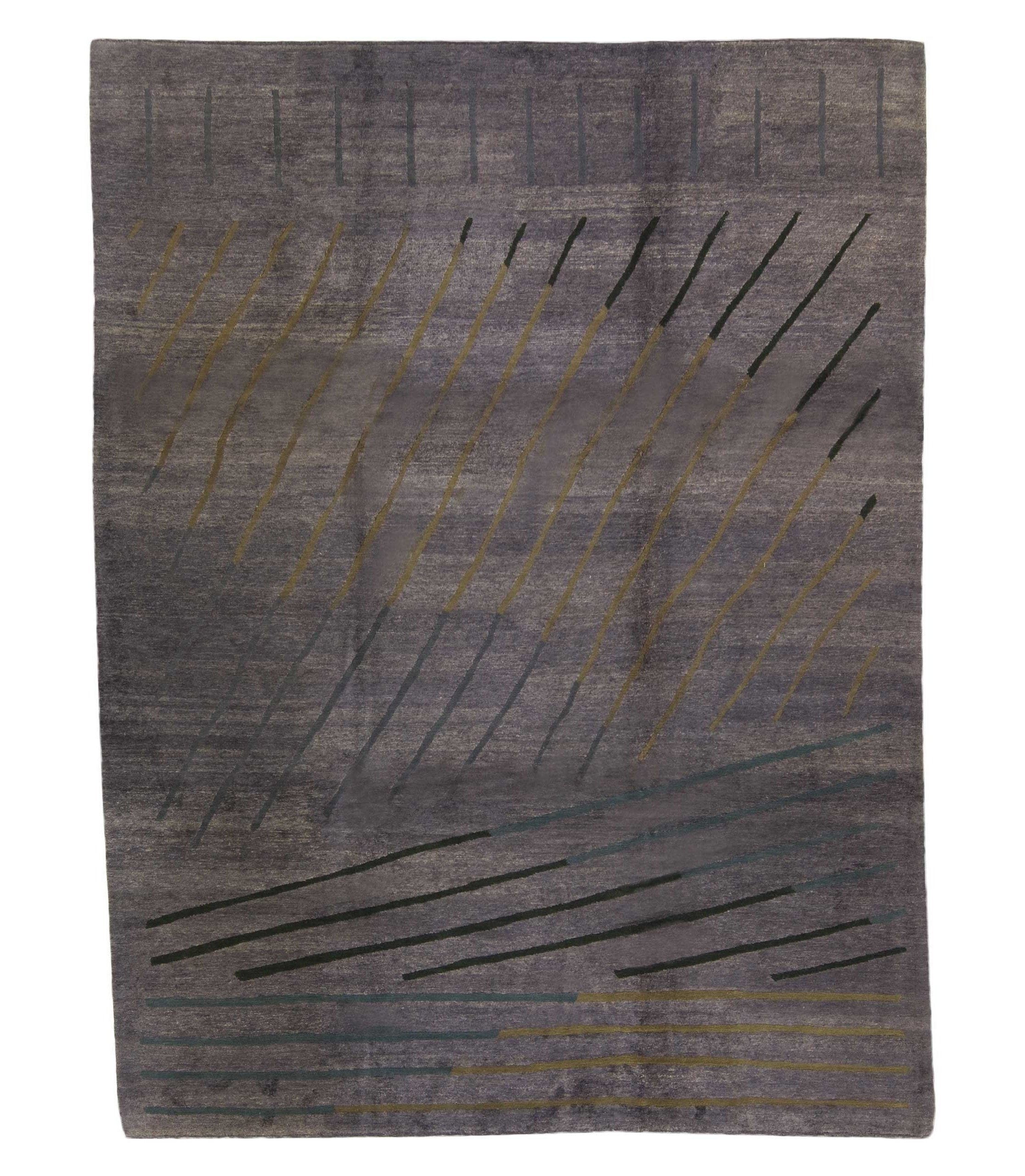 A silk and wool accented Kevin Walz Shakti weave rug in deep plum. Hand knotted in Nepal, Astro Plum is a mostly silk area rug with wool accents using our smooth, Shakti weave with a pile height around 0.28 inches. The silk is a gorgeous deep purple, however keep in mind that the colors will vary greatly with different lighting source and intensity because of the high shimmer of the silk. The wool accent colors are golden taupe, black, and steel blue. The high silk content lends an extremely soft and luxurious feel to this carpet. Astro Plum is a great rug to consider for lower traffic areas such as a bedroom, office or living room. This rug is available in a variety of sizes and is ready for immediate shipping.