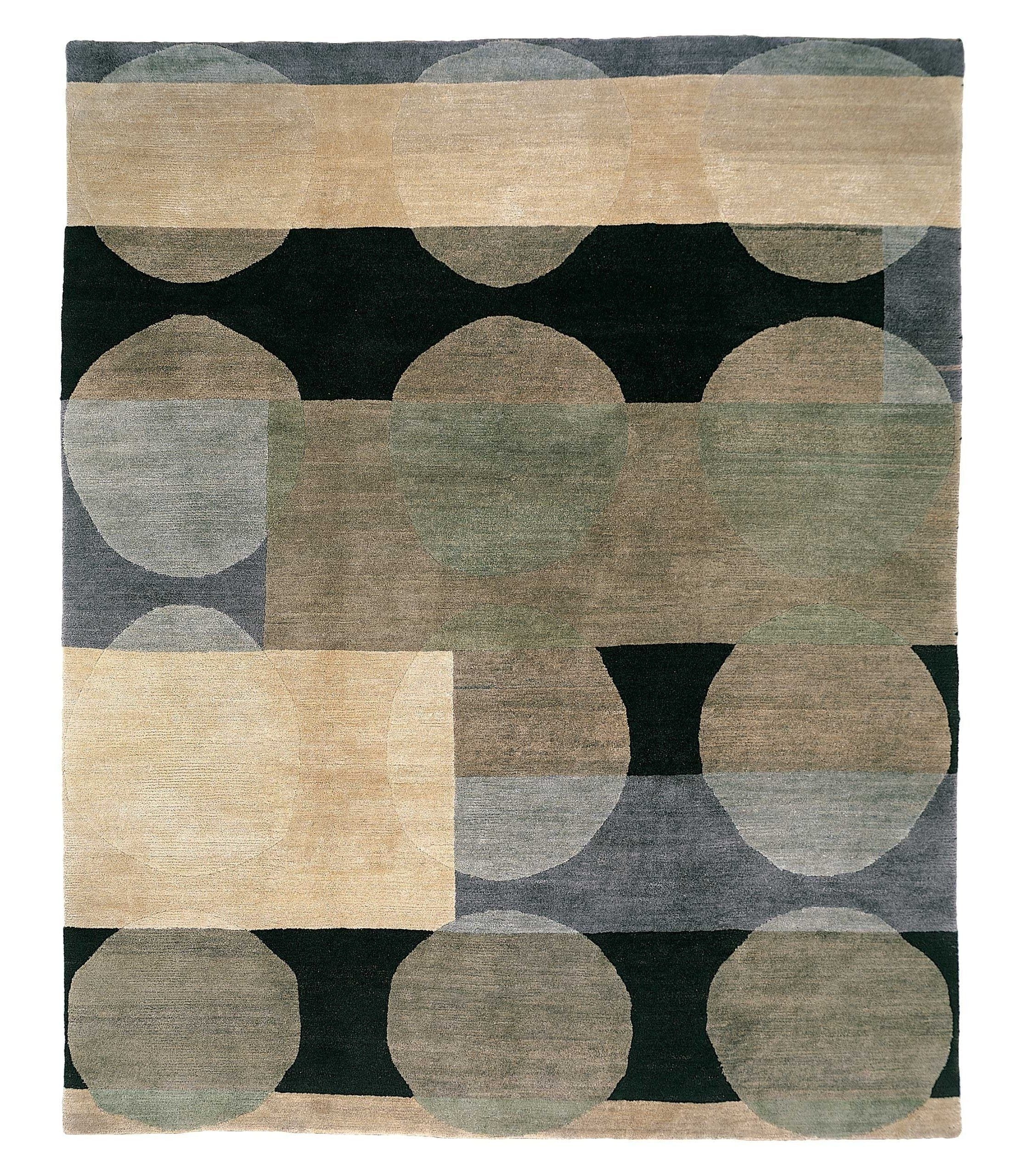 Eclipse Black was hand-knotted in Nepal of 100% Himalayan wool using our Setana weave which has a plush and luxurious pile with an average height of 0.55 inches. Eclipse is a modern geometric patterned rug that utilizes a creative use of color to give the design an illusion of layers throughout the pattern. Eclipse Black has a black background on which the geometric shapes come to life in beige, taupe and grey tones.
