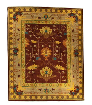 Fine detailing and a highly layered narrative, Big Donegal is one of our most popular Arts and Crafts border rugs. Charming, artful motifs are delicately rendered in the finest Tibetean wool.