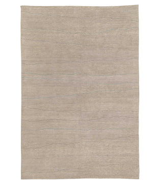 A custom square 100% wool Kotana weave rug in light grey. This rug was made in Nepal of 100% Himalayan wool and constructed using our Kotana weave which has a pile height of about 0.41 inches. Low Tide Raincloud is light grey with accents of uncut loop pile in varying shades of blue.