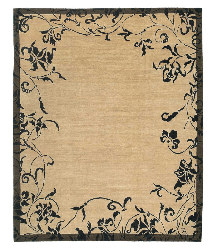 A contemporary interpretation of a traditional design, Venetia Blonde features a black flower and vine design over an oatmeal field. Made 100% Himalayan wool in Nepal, this rug has a pile height less than half an inch. This versatile, neutral design is an excellent choice for a contemporary styled home.