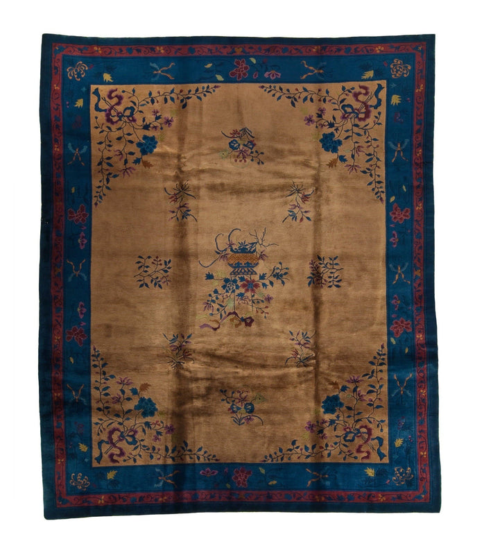 ANTIQUE CHINESE ART DECO MANDARIN TAUPE BLUE 8' 0" x 9' 6"