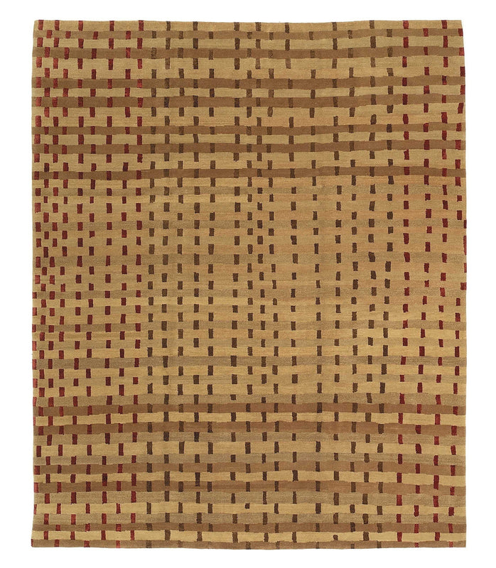 Inspired by textile design in a series of adaptable palates, Rag Weave is a grounding carpet that gives any room depth and movement. This transitional carpet was handcrafted in Nepal of the finest Himalayan wool and silk using our premium Shakti weave. The texture of Rag Weave Maple is smooth and soft with a pile height of about 0.28 inches. The lovely beige tones used in this colorway are adaptable and perfect for uniting existing colors in your design. The silk accents offer a subtle pop of color with ruby red, rich brown and taupe.