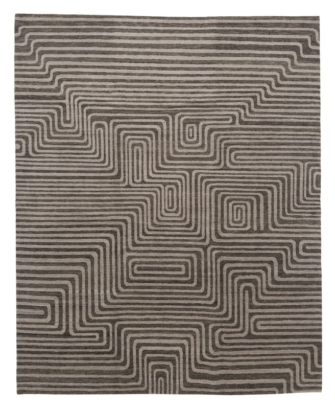A playful carpet that utilizes contrasting tones of taupe and brown to create movement in a playful and modern design. Hand knotted of 100% Tibetan wool, Plateau Taupe was crafted using our Kotana weave. The pile height of this rug is 0.41 inches.