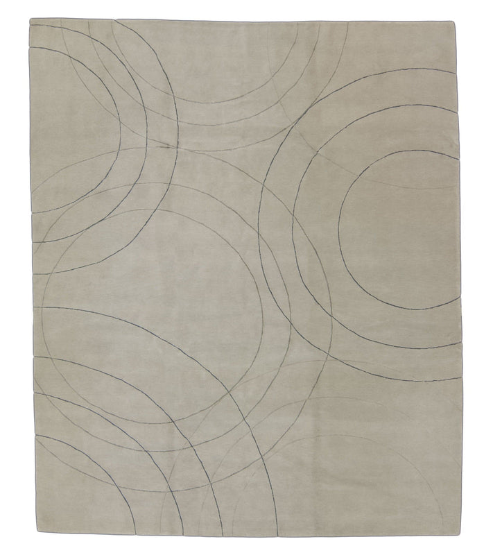 Grounding and moving, soft circular ripples move throughout this piece in a delicate blending of subtle sophistication and luxurious comfort. A masterful canvas of beige and warm grey hues form a brilliant organic backdrop for silky dark grey ripples to shimmer across the floor. Cirque Pewter was handcrafted in Nepal of wool and 10% silk used in the accents. The pile height is an average of 0.28 inches and a soft, smooth texture provided by our premium Shakti quality weave.