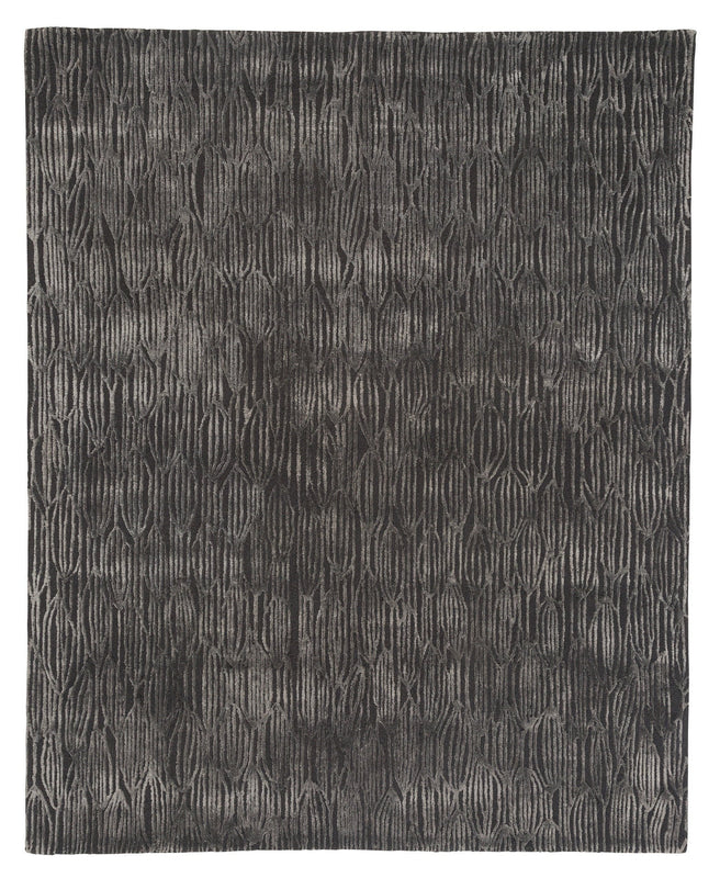 An intricate pattern to be appreciated from every angle. Hand-tufted in the finest wool and bamboo silk. A shimmering oasis for the floors, silver accents overlay a dark charcoal grey field. Ivy Charcoal can also be made to order to any size, contact your salesperson for more info on our custom program.