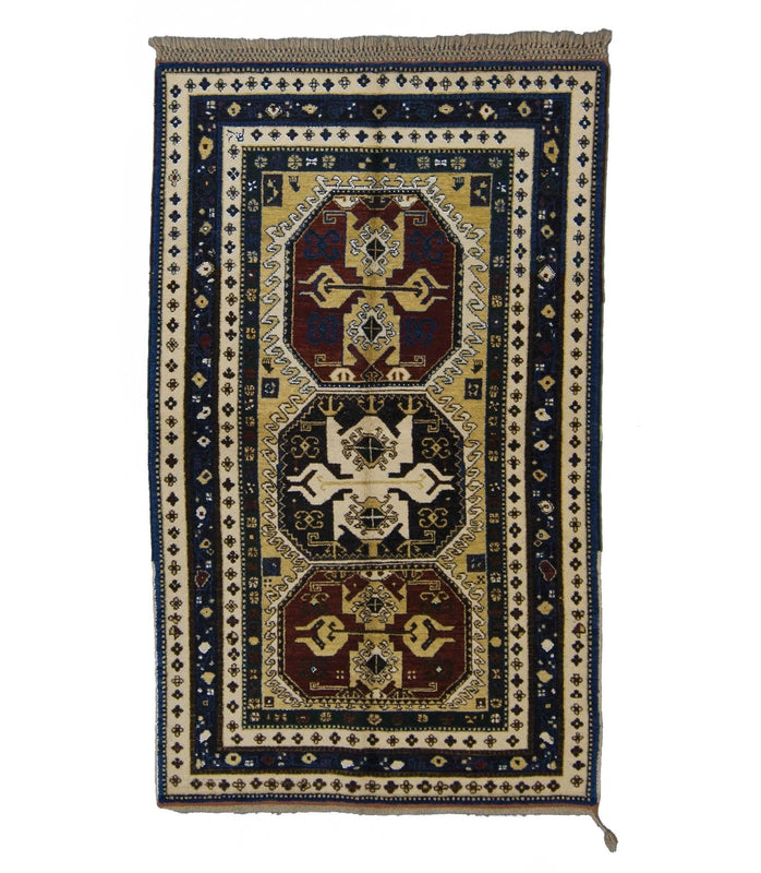 A traditional inspired Lori-Pambak Armenian wool rug in yellow, red and blue.