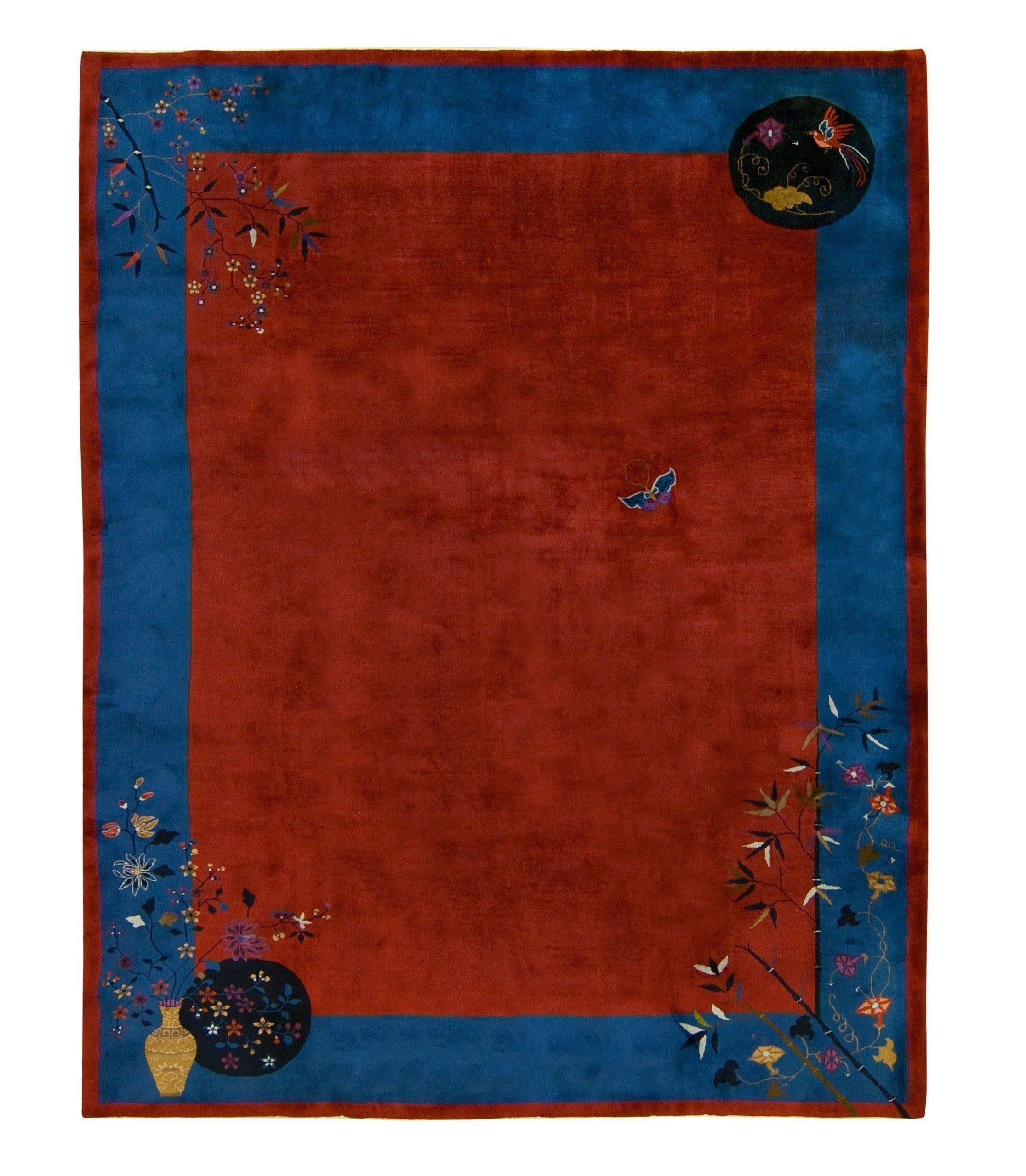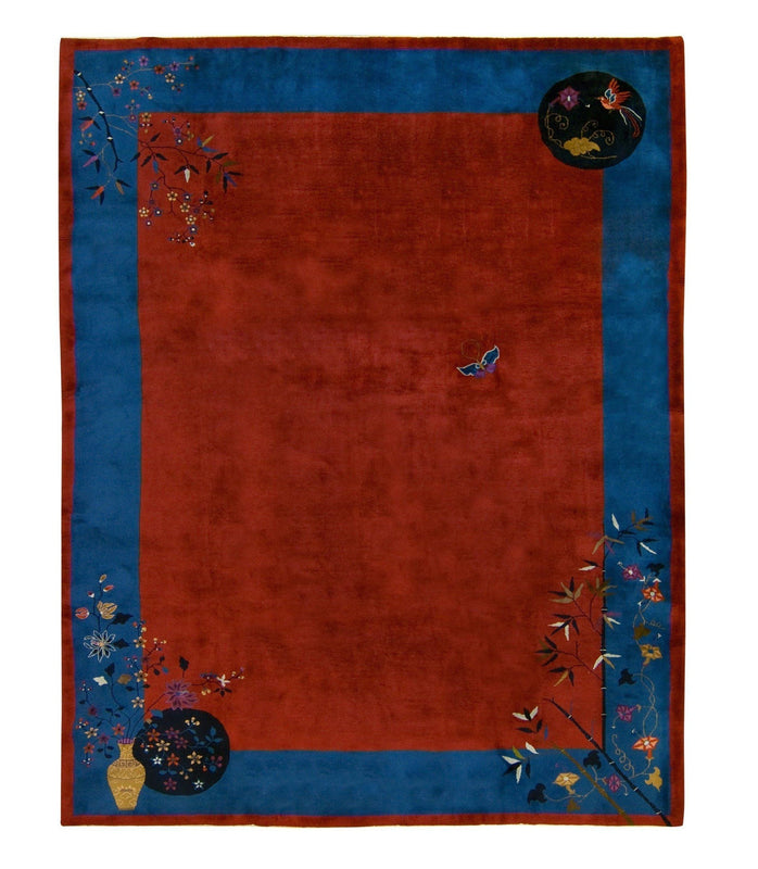 ANTIQUE CHINESE NICHOLS ART DECO, RED 8' 11'' x 11' 5''