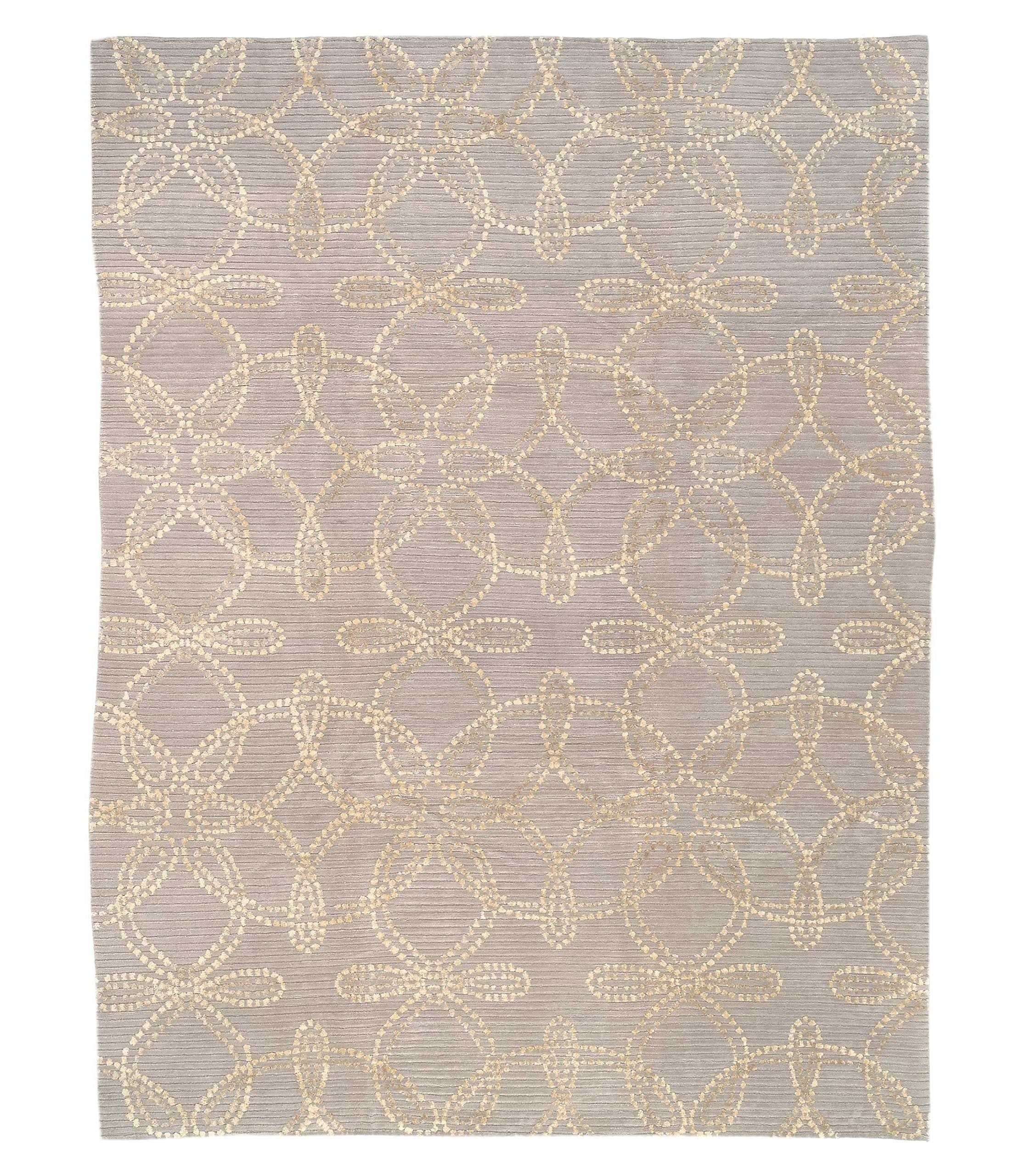 From the Radiance Collection by Barbara Barry, the Tracery Amethyst rug is made from 65% Himalayan wool and 35% silk. The Tracery rug is made in Nepal with our Shakti weave, but with some interesting techniques: an alternating high/low construction and lines of uncut loop knot pile which makes it more textural than other rugs in this weave. The Amethyst name of this rug needs a little explanation as the hue of this rug is not really purple or grey but a soft toned combination of the two.