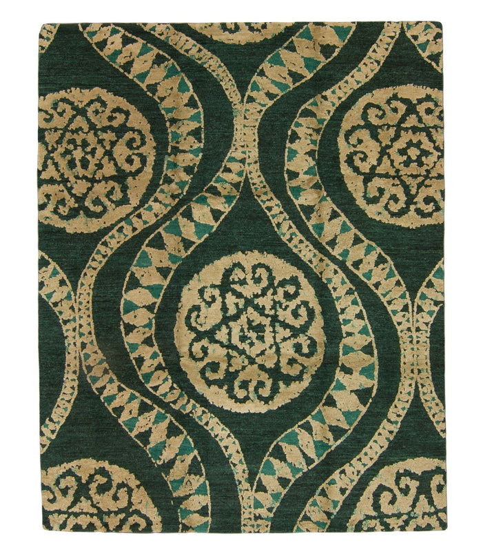 Blended Wool, Bamboo Viscose & Linen, one third of an inch pile height, Made in Nepal, Tufenkian Kotana Weave.