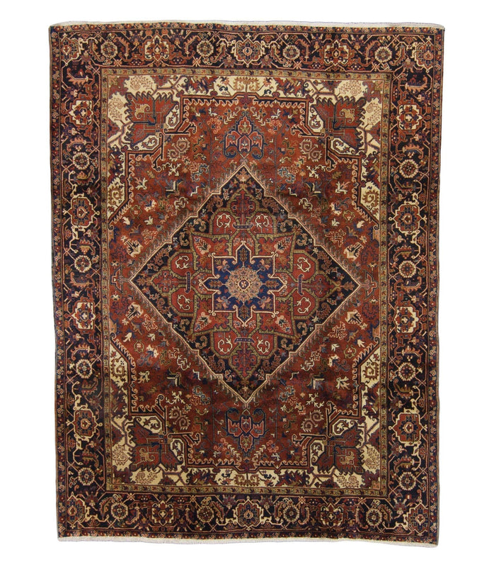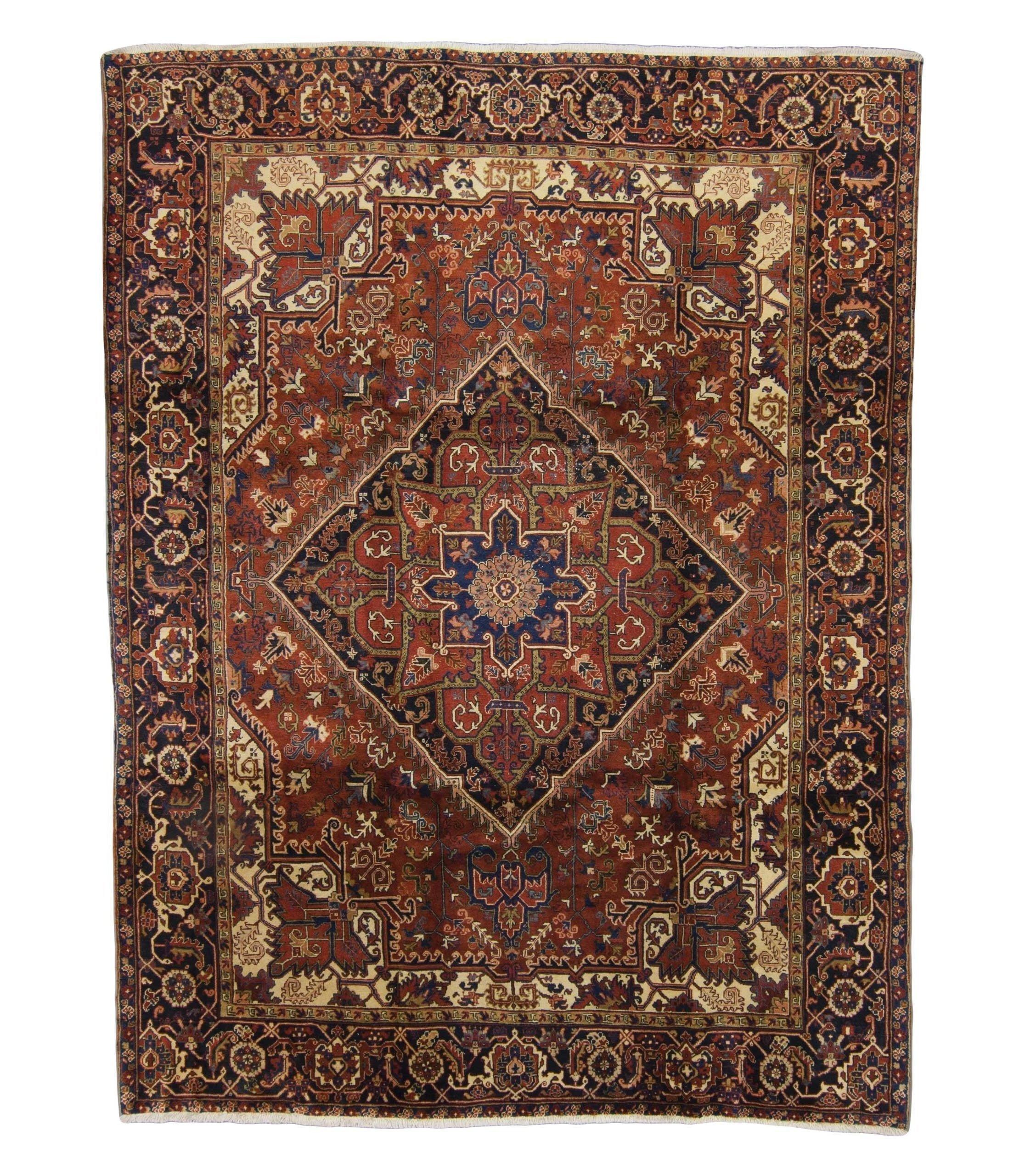 This semi antique Persian rug was personally selected by James Tufenkian. He chose this Heriz for its color, vibrancy, unique pattern and its excellent condition. This rug was hand knotted of 100% Persian wool and it measures 8'3" x 10'10".