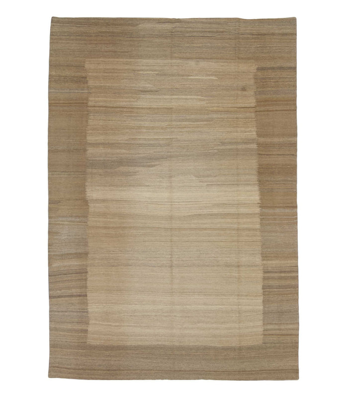 This rug measures 10'6" x 15'5". It was hand knotted of 100% Persian wool. A flat weave carpet, it has a pile height under 1/3 of an inch.