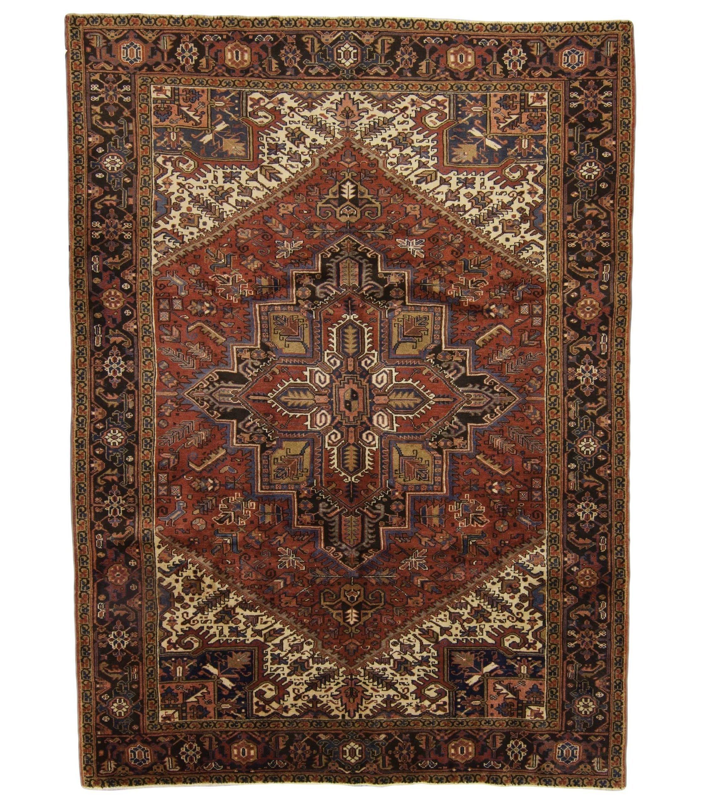 This semi-antique rug measures 7'10" x 10'11" and was crafted in Iran prior to 1949. Made of 100% Persian wool, it is in excellent condition. This rug can be shipped out immediately from our warehouse to your home.