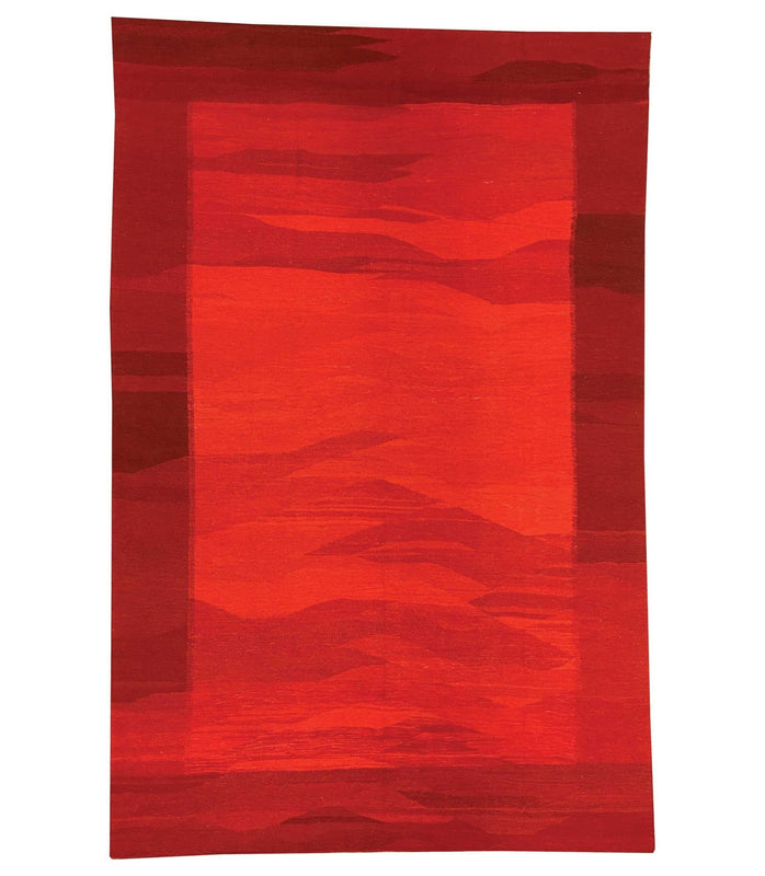 This one-of-a-kind flatweave from Iran is hand knotted in stunning crimson tones. 100% wool, chosen individually by James for high-quality construction and rare craftsmanship.