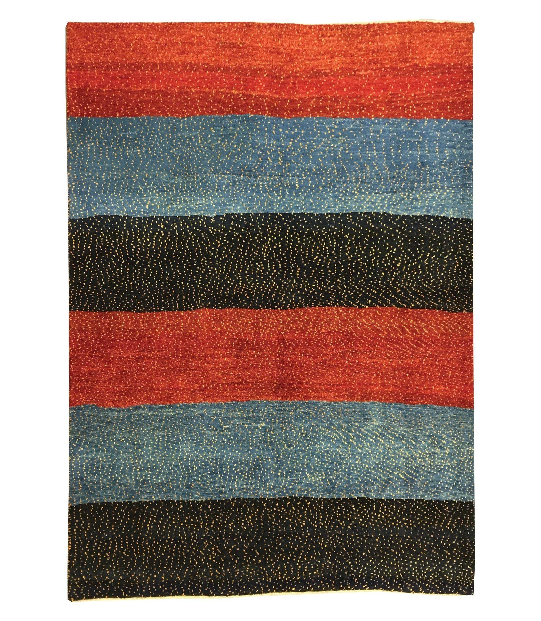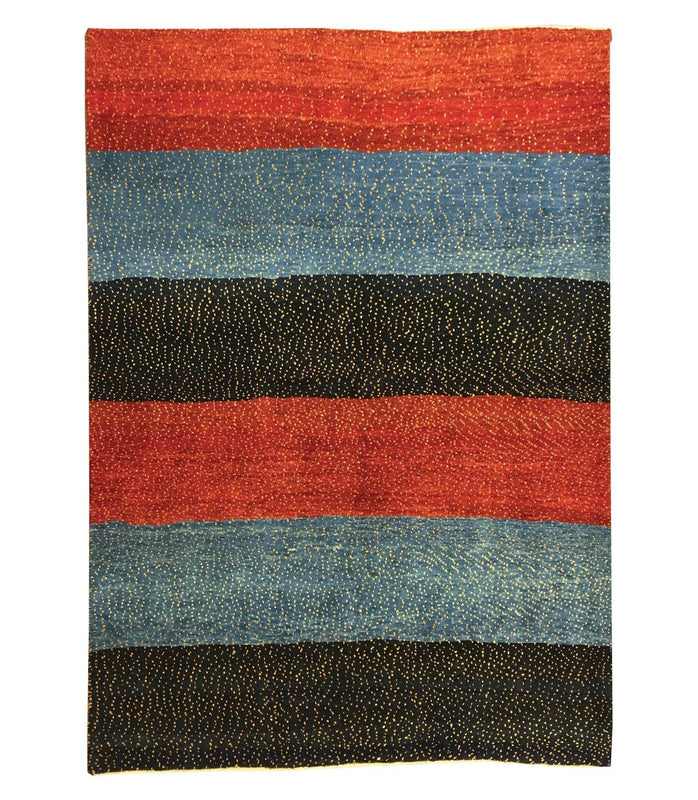 This one of a kind gabbeh was hand knotted using 100% Persian wool.