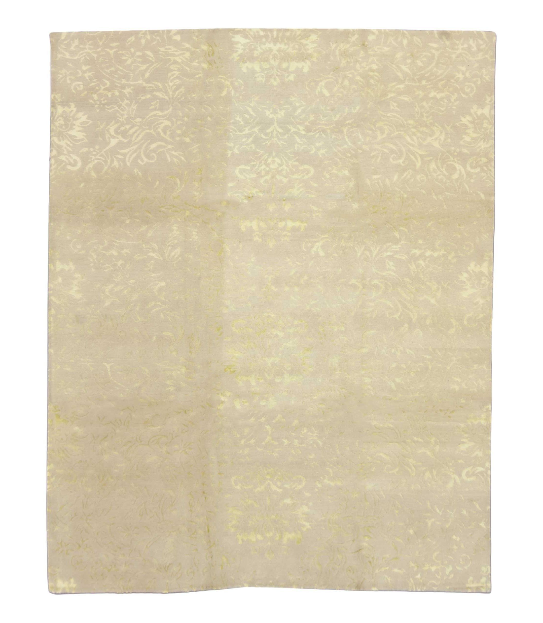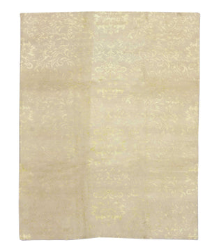 This hand knotted wool and silk rug was made in Nepal. It has a pile height under 1/2 of an inch and is a one of a kind 8x10 sample.