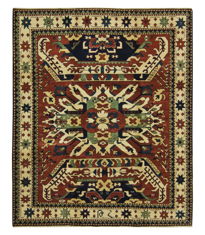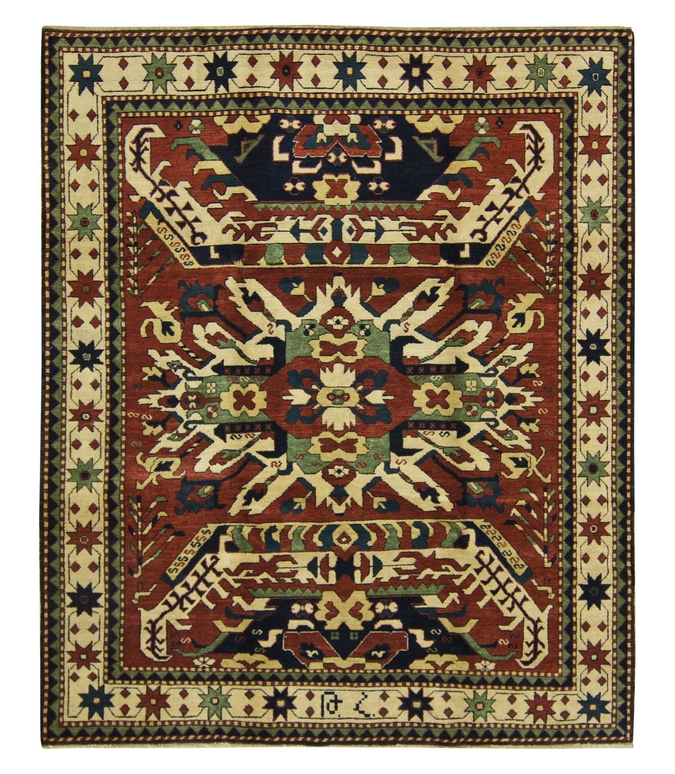 This classic Eagle Kazak design is available in rare, oversize dimensions. This rug was made by Tufenkian outside of Yerevan, Armenia using 100% Armenian wool and the pile height is under one half inch. Any lover of Caucasian rug patterns would see the tribal Eagle Kazak pattern in our Armenian Chelabird or Chelaberd rug design.
