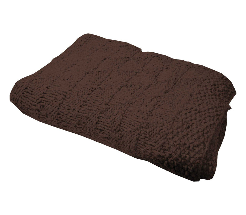 100% wool handcrafted afghan blanket in cocoa brown. This afghan wool blanket was hand knitted in Armenia by one of the Armenian Knitting Ladies, a project from the Tufenkian Foundation. This afghan blanket is available in cocoa brown in approximately 5x7 and is ready for immediate delivery.