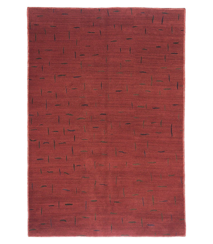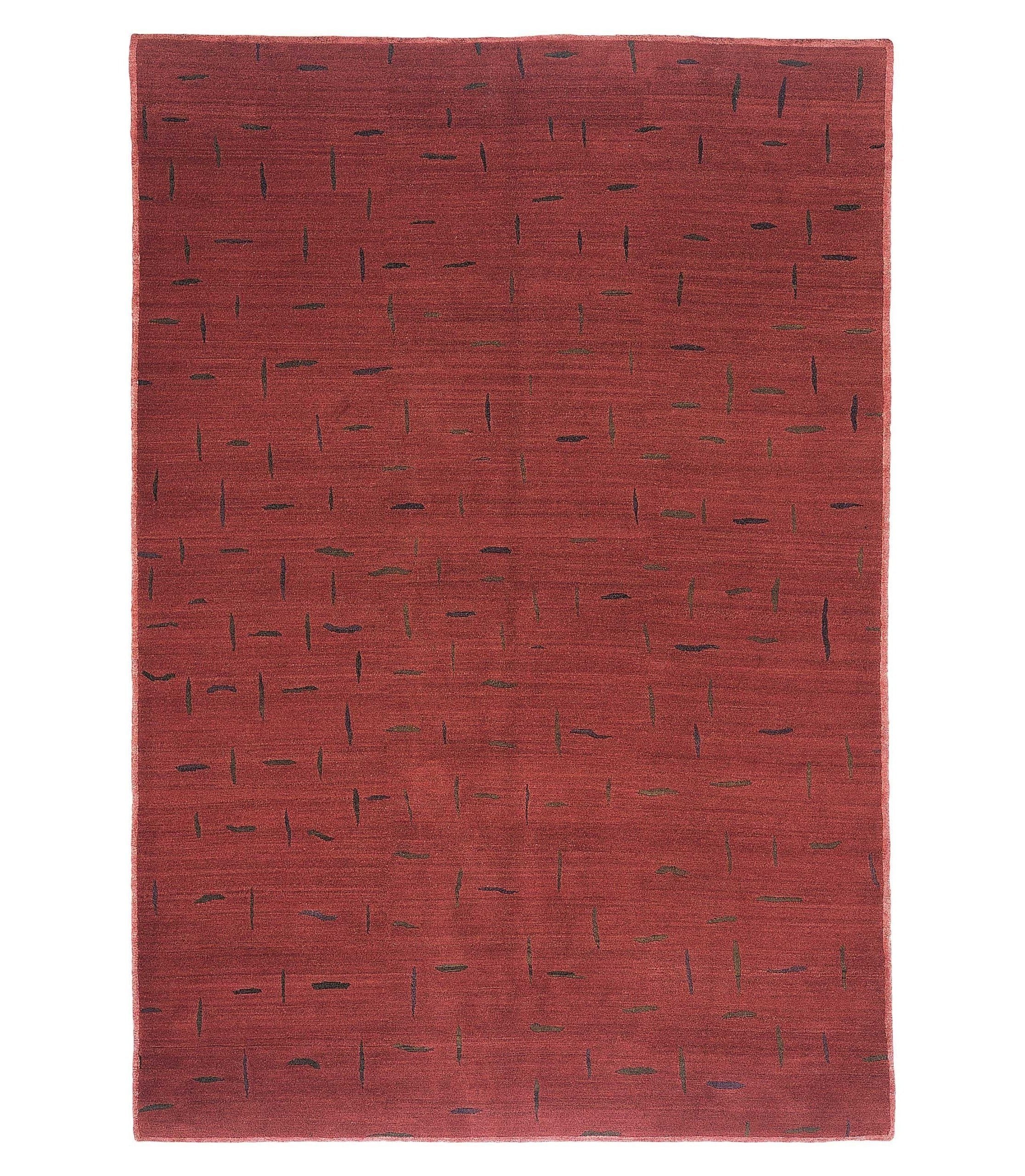 A modern textural Shakti weave handmade rug in red, the subtle imprints of color on a rich marbled background make Chit Chat a perfect uniting element for your interiors. Chit Chat Lipstick is a modern vibrant red colorway with a thin border of a lighter red and black accents of uncut loop pile which give the design added texture. This rug was hand knotted in Nepal of the finest Himalayan wool using our premium Shakti quality weave. The pile has an average height of 0.28 inches with a soft and luxurious finish.