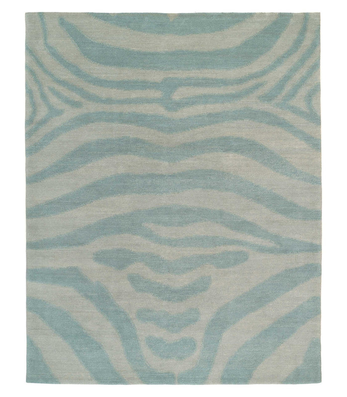 An exotic pelt inspired carpet that will make you feel like you're on safari, while a simple two tone palette adds adaptability. Punjab Rain was hand-knotted in Nepal of 100% wool using our Setana weave. The Setana construction uses yarns that are thicker than those used in our Kotana, Timpa and Shakti weaves and has a slightly higher average pile height of 0.55 inches. Punjab Rain is a soothing colorway in pale blue and sky blue with available in a variety of sizes to fit any area in your home.