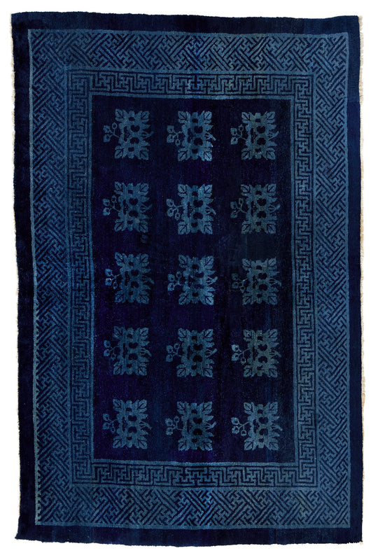 ANTIQUE CHINESE PAO TAO, BLUE - FLOWER 4' 4'' x 6' 9''