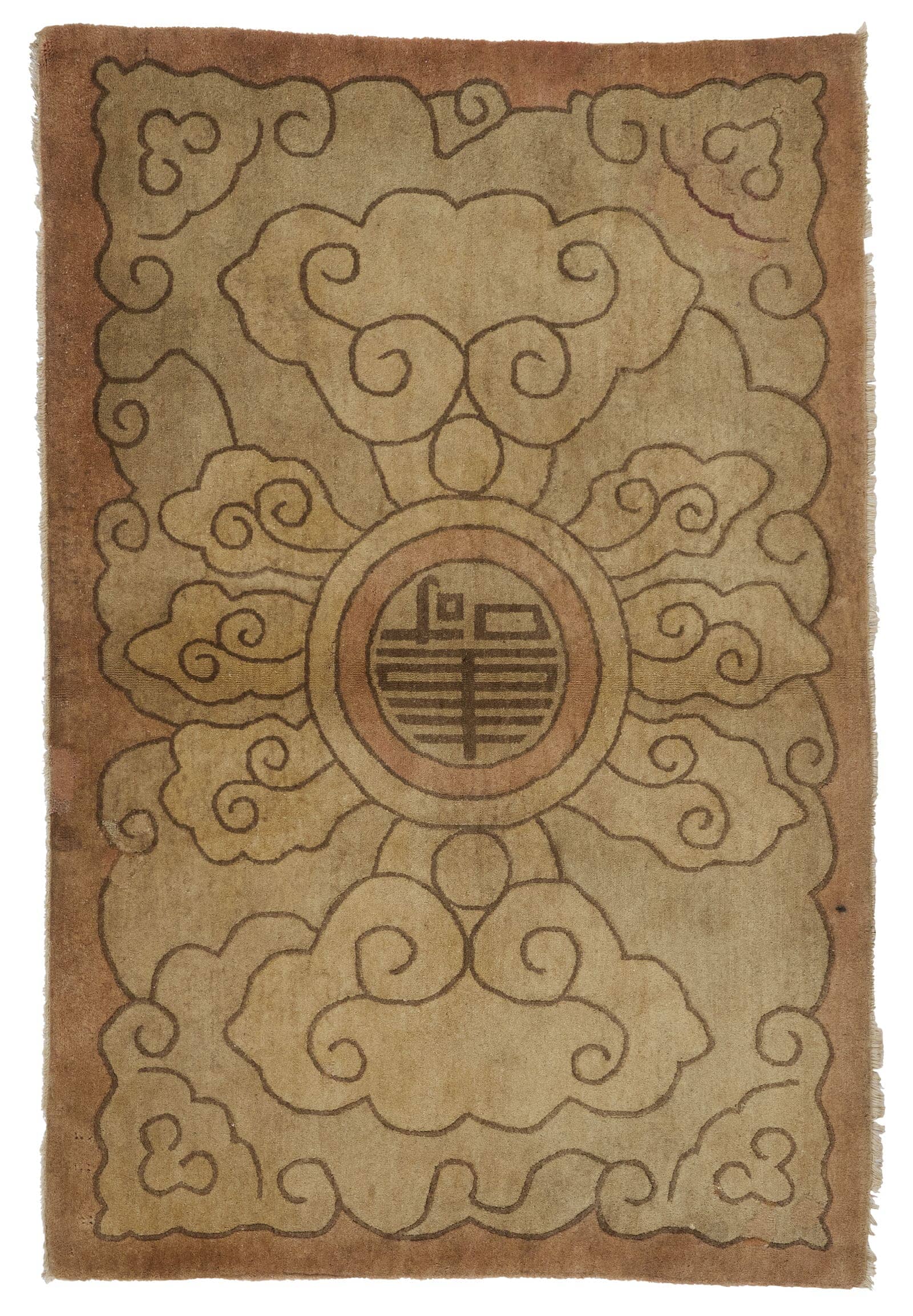 ANTIQUE CHINESE PAO TAO DO BEIGE-APRICOT CLOUDS 3' 8'' x 5' 8