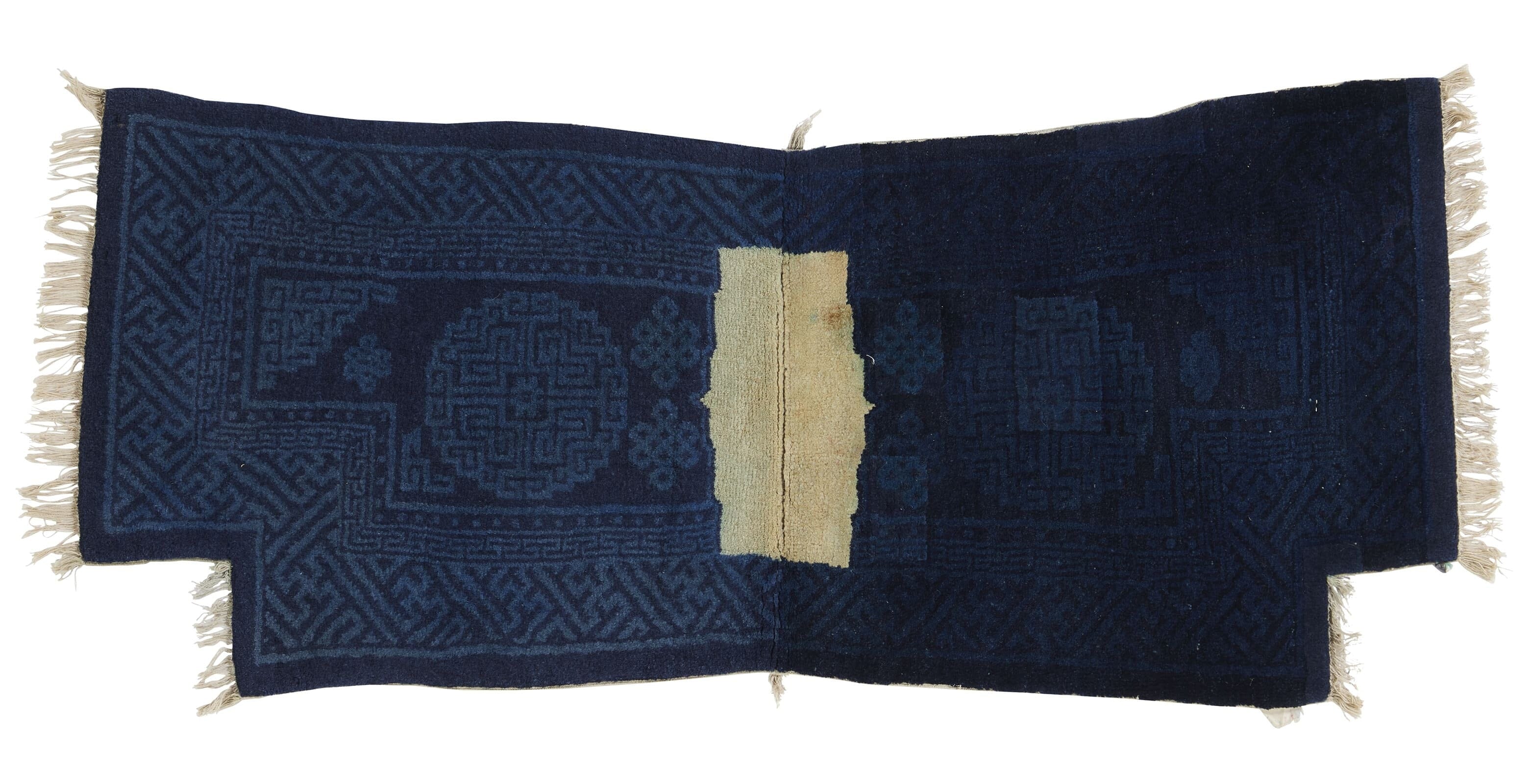 ANTIQUE CHINESE PAO TAO DO BLUE SADDLECLOTH 1'11" x 4'4"