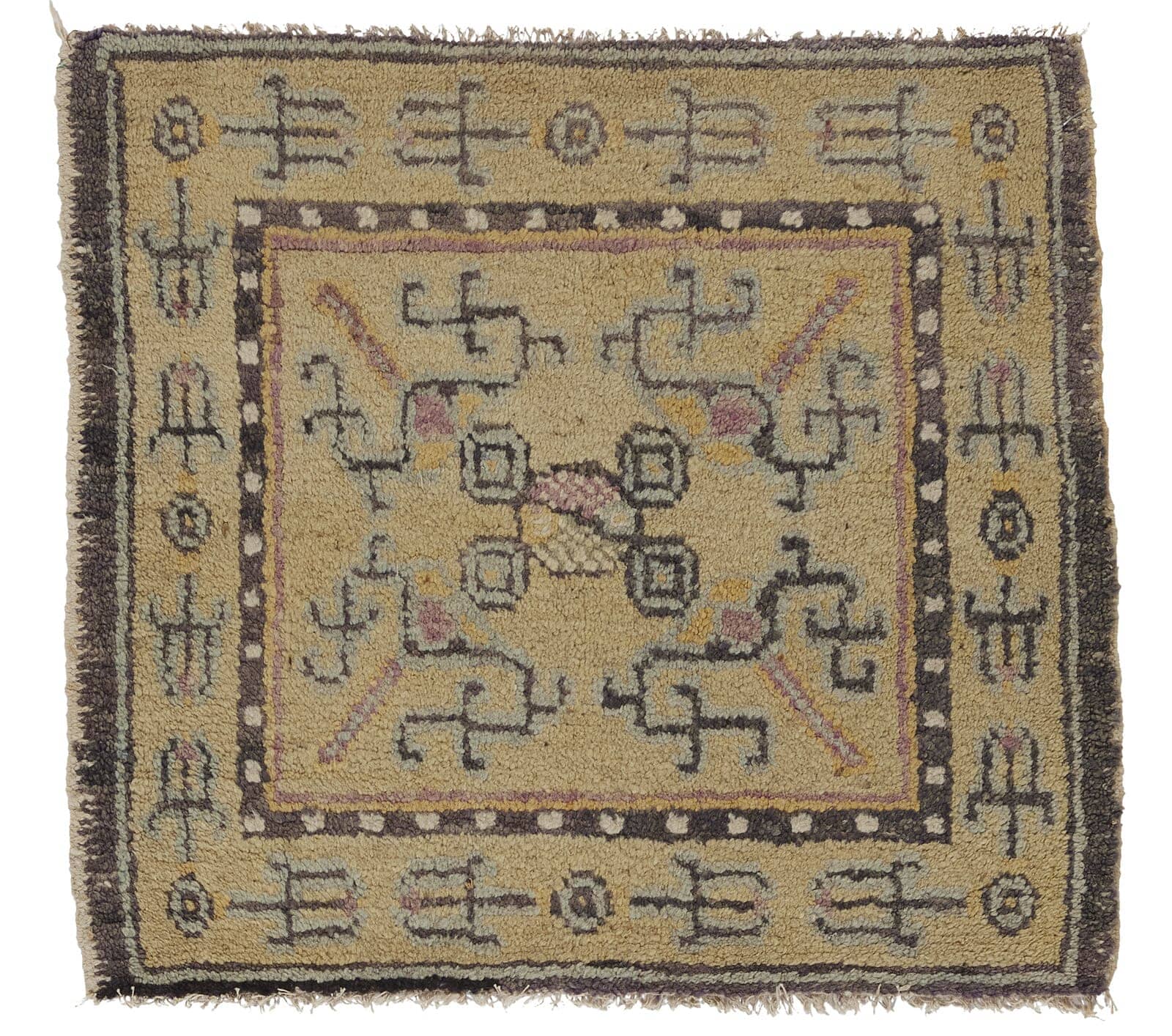 This is a one of a kind Pao Tao rug hand woven of 100% wool in China. This rug was personally selected and imported by James Tufenkian, chosen for the combination of excellent quality and great care.