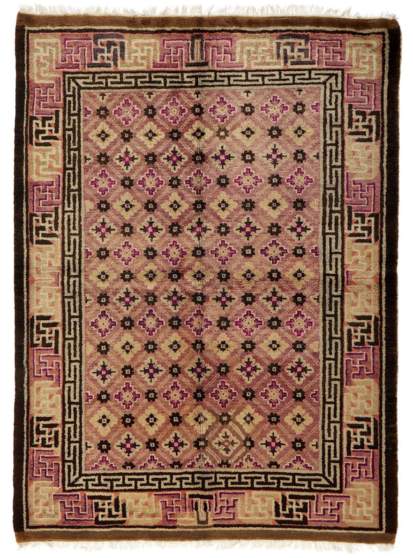 ANTIQUE CHINESE PAO TAO ROSE/BROWN - BROCADE 5' 2'' x 6' 8''