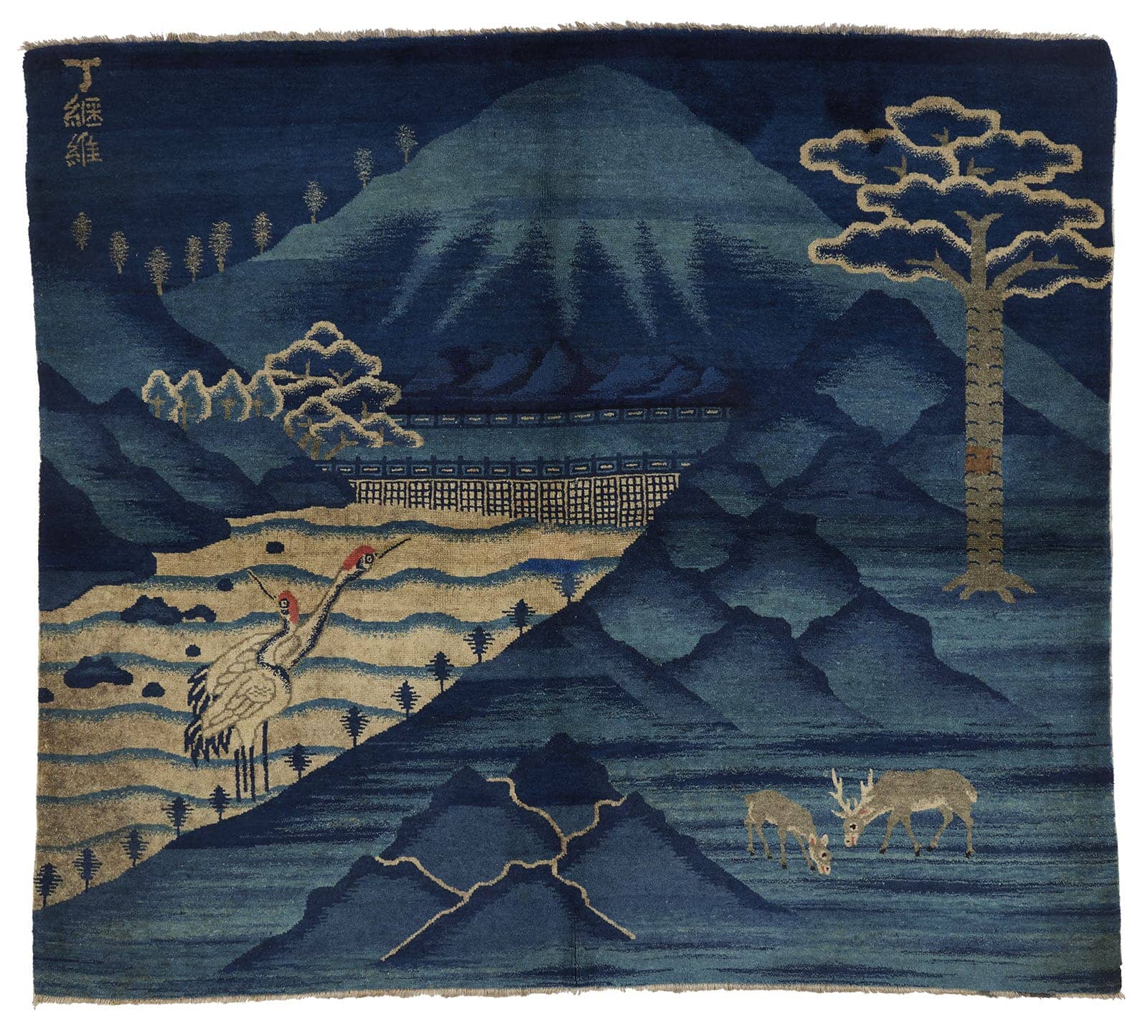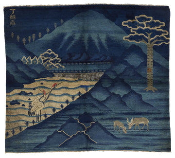 ANTIQUE CHINESE PAO TOU BLUE - LANDSCAPE 6' 1" X 5' 6"