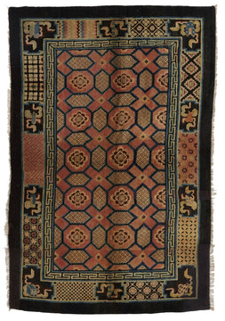 ANTIQUE CHINESE PAO TOU SALMON/BLUE 5' x 8'